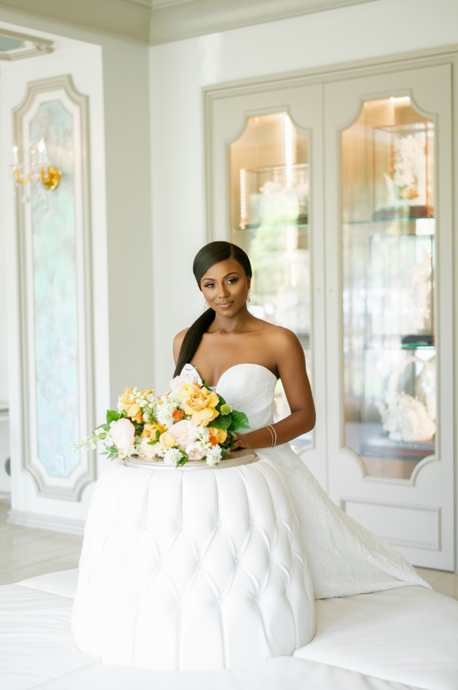 Bridal Gown: Bella’s Bridal & Formal. Bouquet: Willow & Pine Floral Design. Hair Stylist: MiRich Hair. Jewelry: Diamonds Direct. Makeup Artist: P. Sanders Makeup. Photography: Piper Vine.