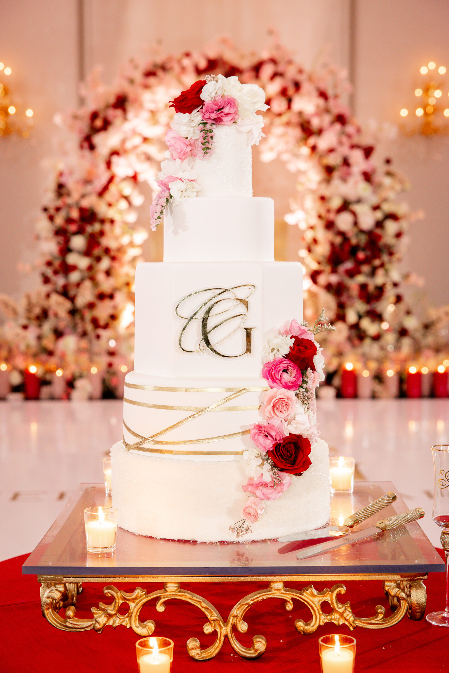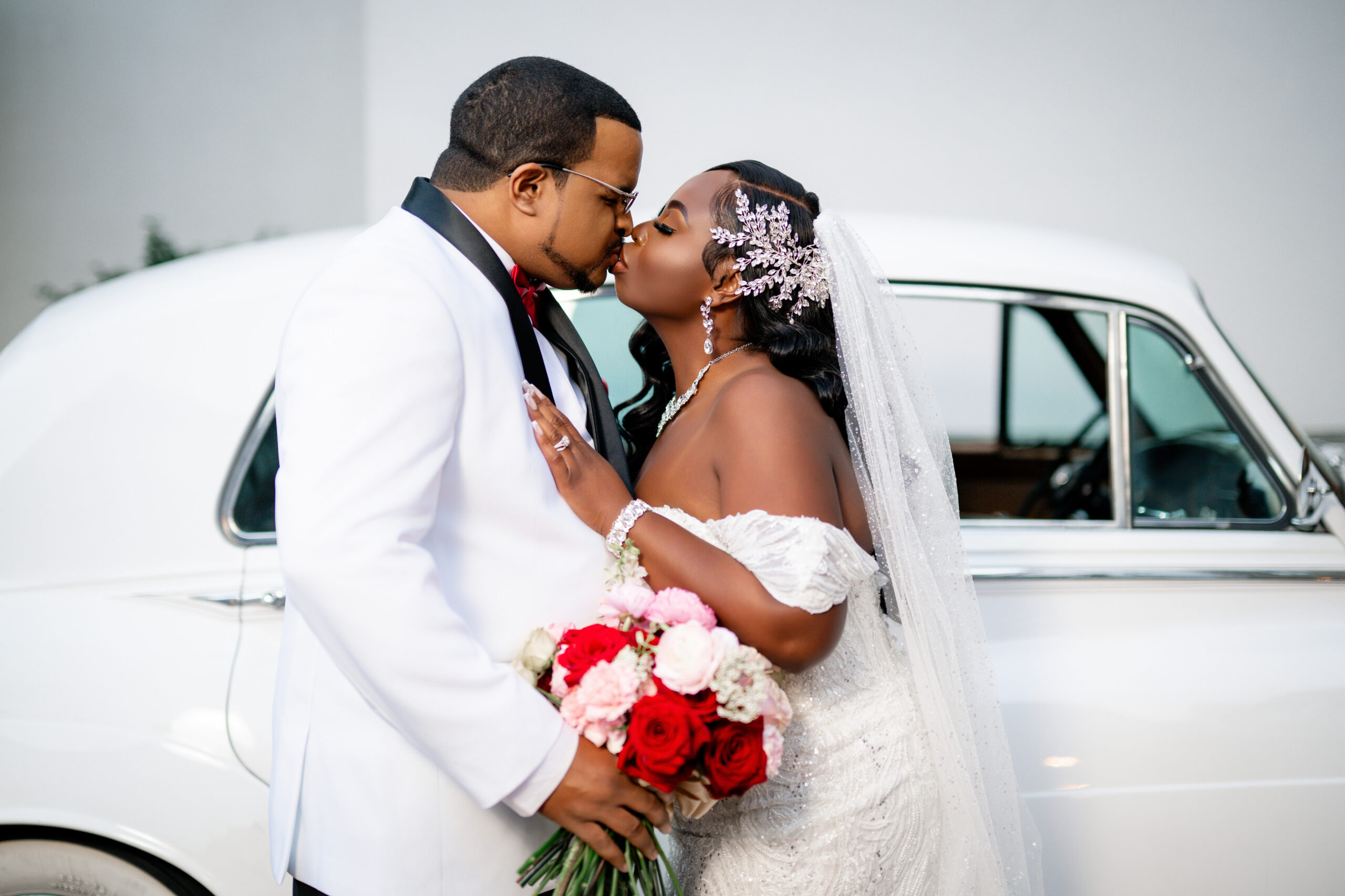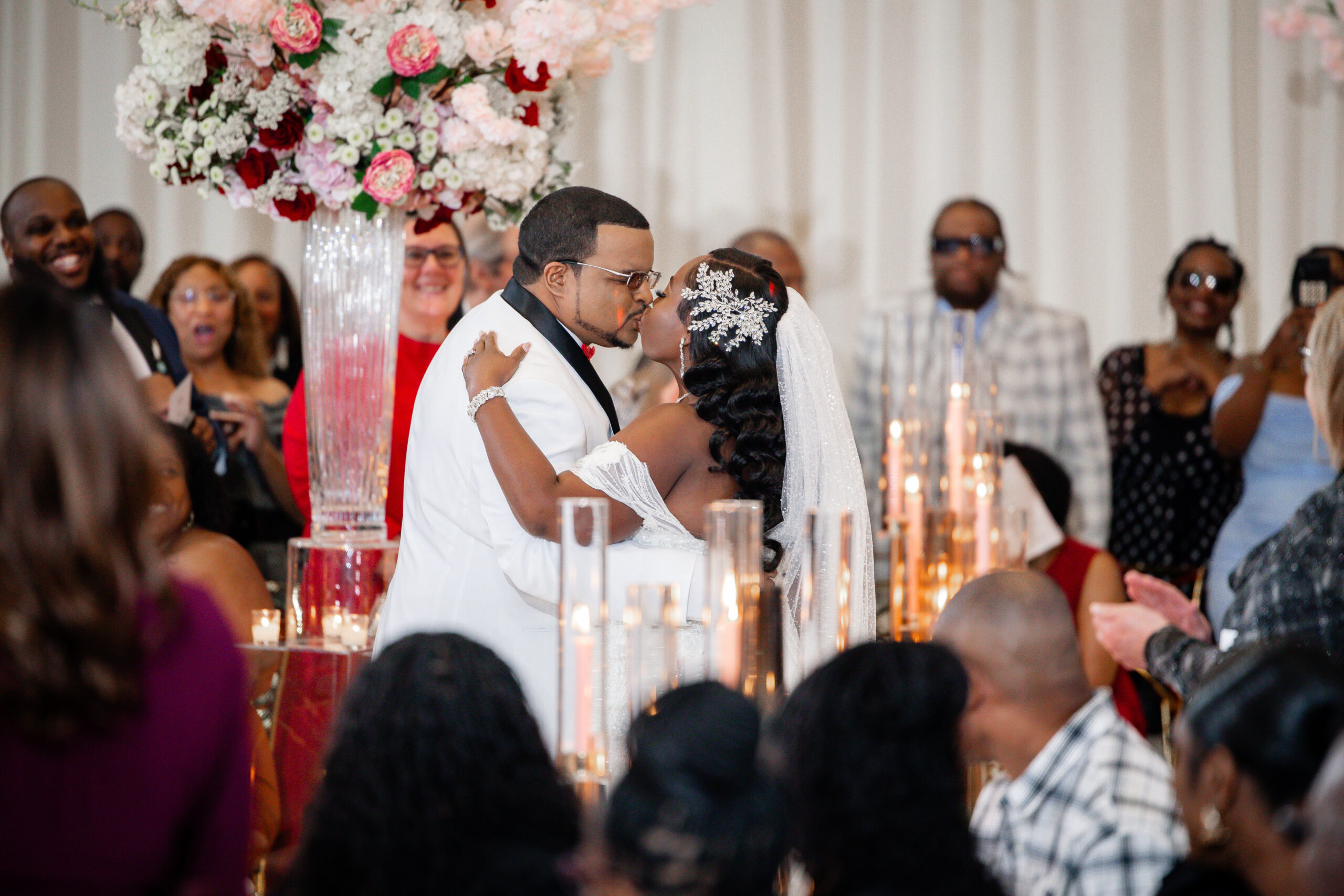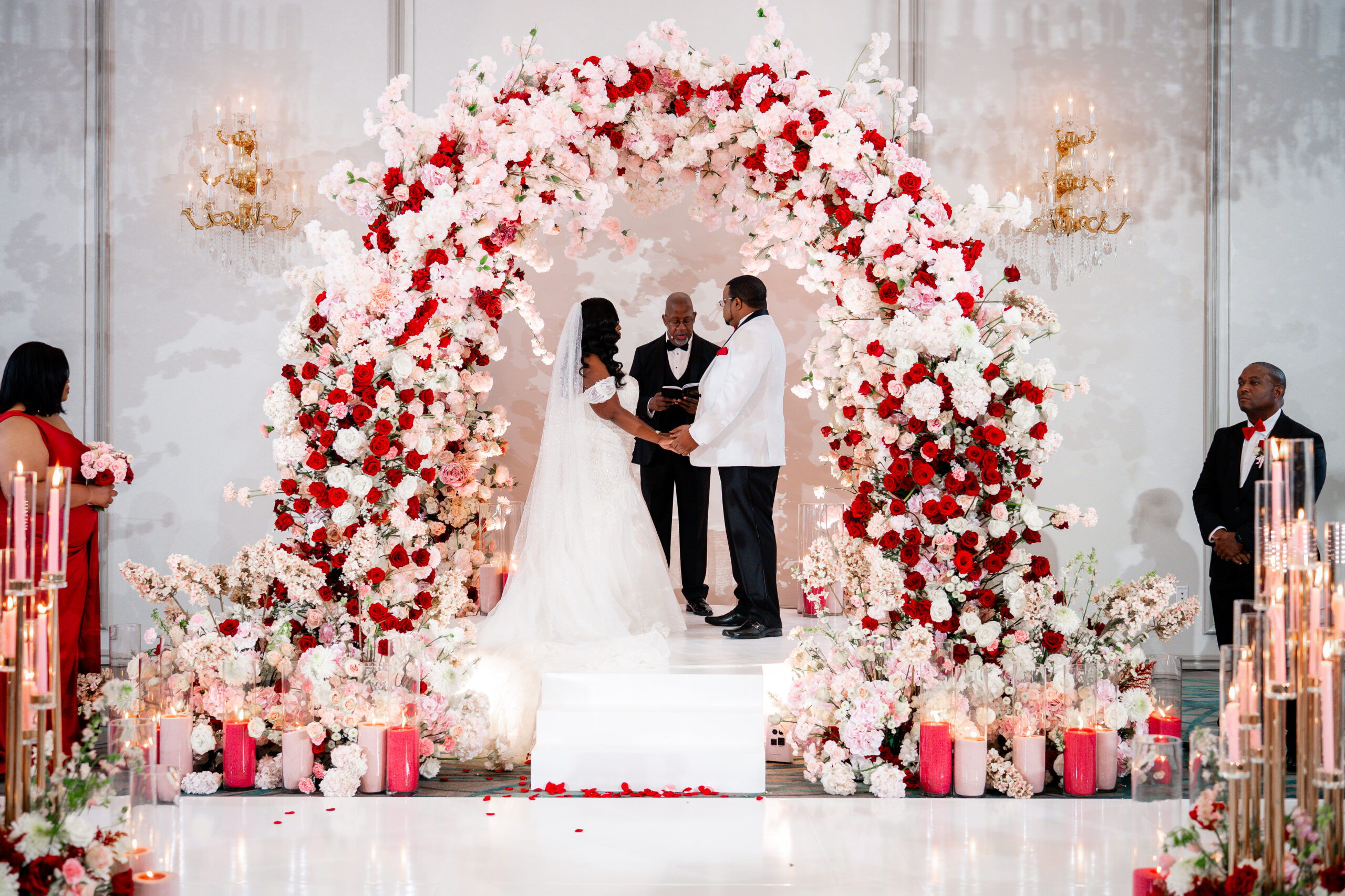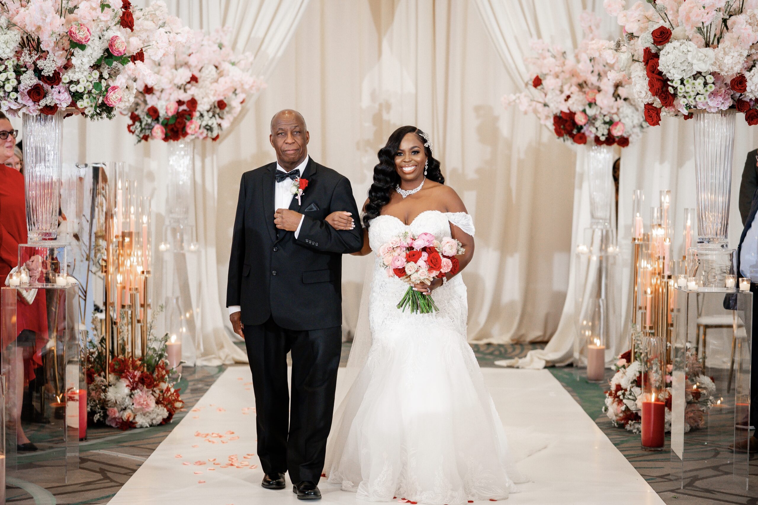 Bridal Gown: Bella’s Bridal. Bridesmaid Gowns: David’s Bridal. Cake: Barb’s Cakes. Catering, Venue, Wedding Night Accommodations: Grand Bohemian Mountain Brook. Ceremony Saxophonist: Willie Jazzanova Davis. Content Creator: De’Aundria McArthur. Custom Dance Floor Wrap: Laced Vinyl Shoppe. Event Rentals: Decor To Adore, Just Wright Events, PropHouse. Floral Design: The Perfect Creation. Groom’s Attire: Buy4Less Tuxedos. Groomsmen’s Attire: Arzel. Hair Stylist: MiRich Hair. Makeup Artist: Drea Michelle, Jasmine Jones. Lighting & Drapery, Music/Entertainment: B. Brian. Linen: Decor To Adore. MOB Gown: JJ’s House. Photography: Victor Cole Photography. Rings: Kay Jewelers. Stationery: Paper & More Creations. Transportation: Coats Classic Cars. Wedding Planner: Steele Unique Weddings & Events. Videographer: Harper Films.