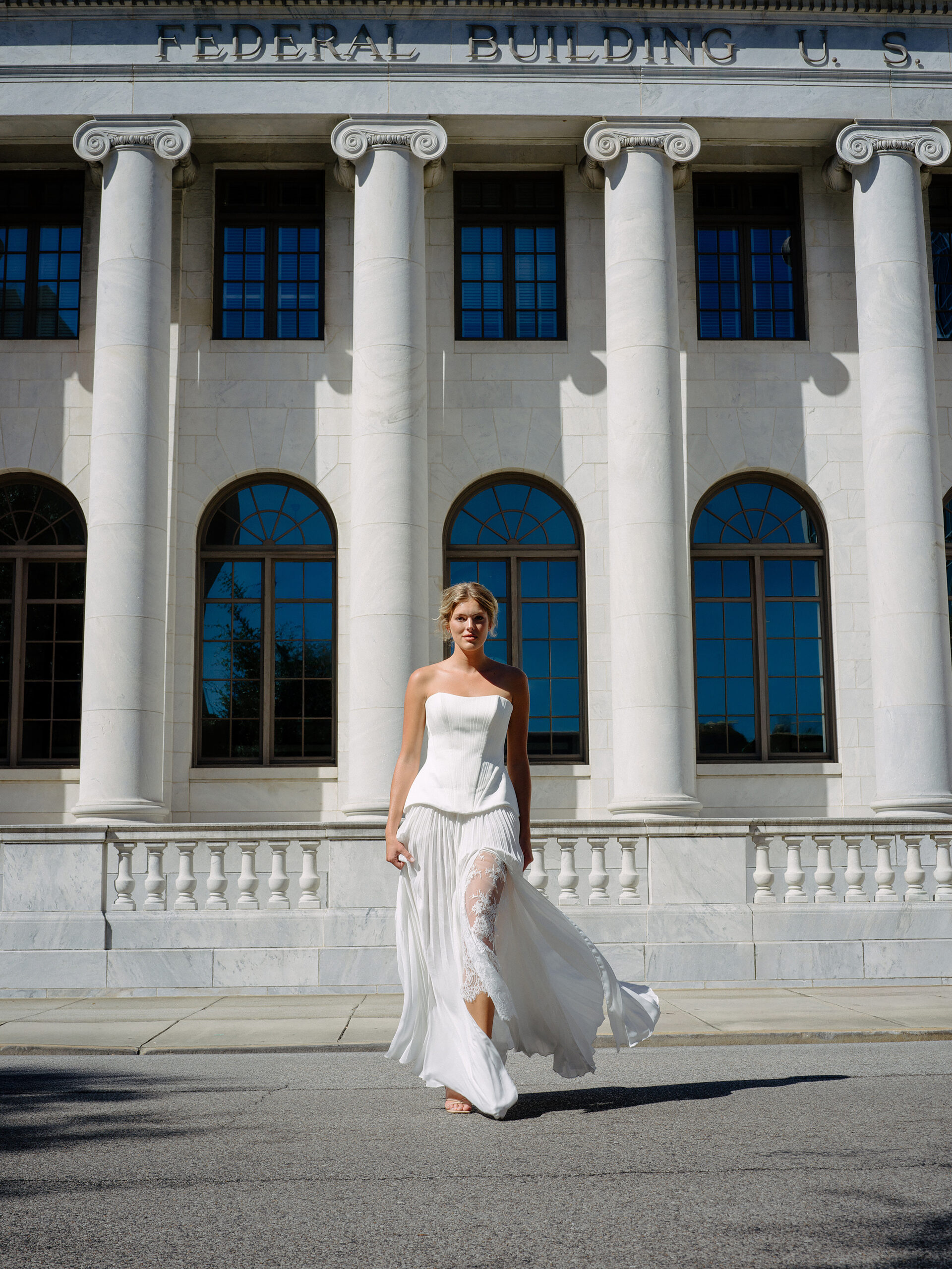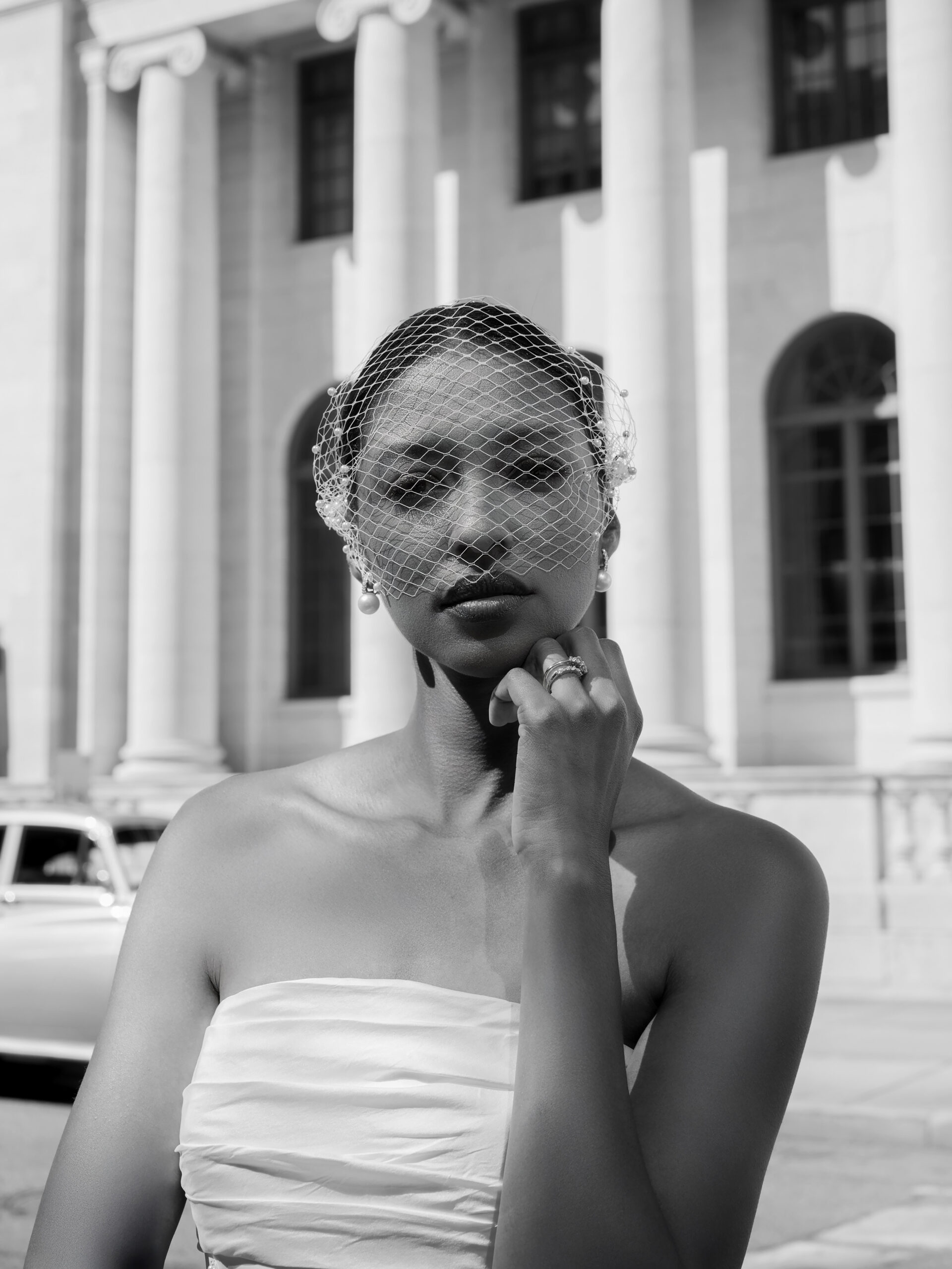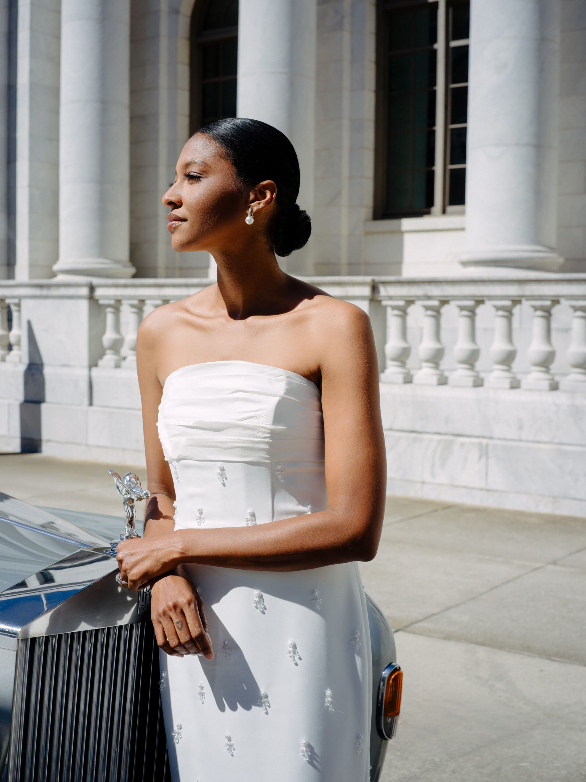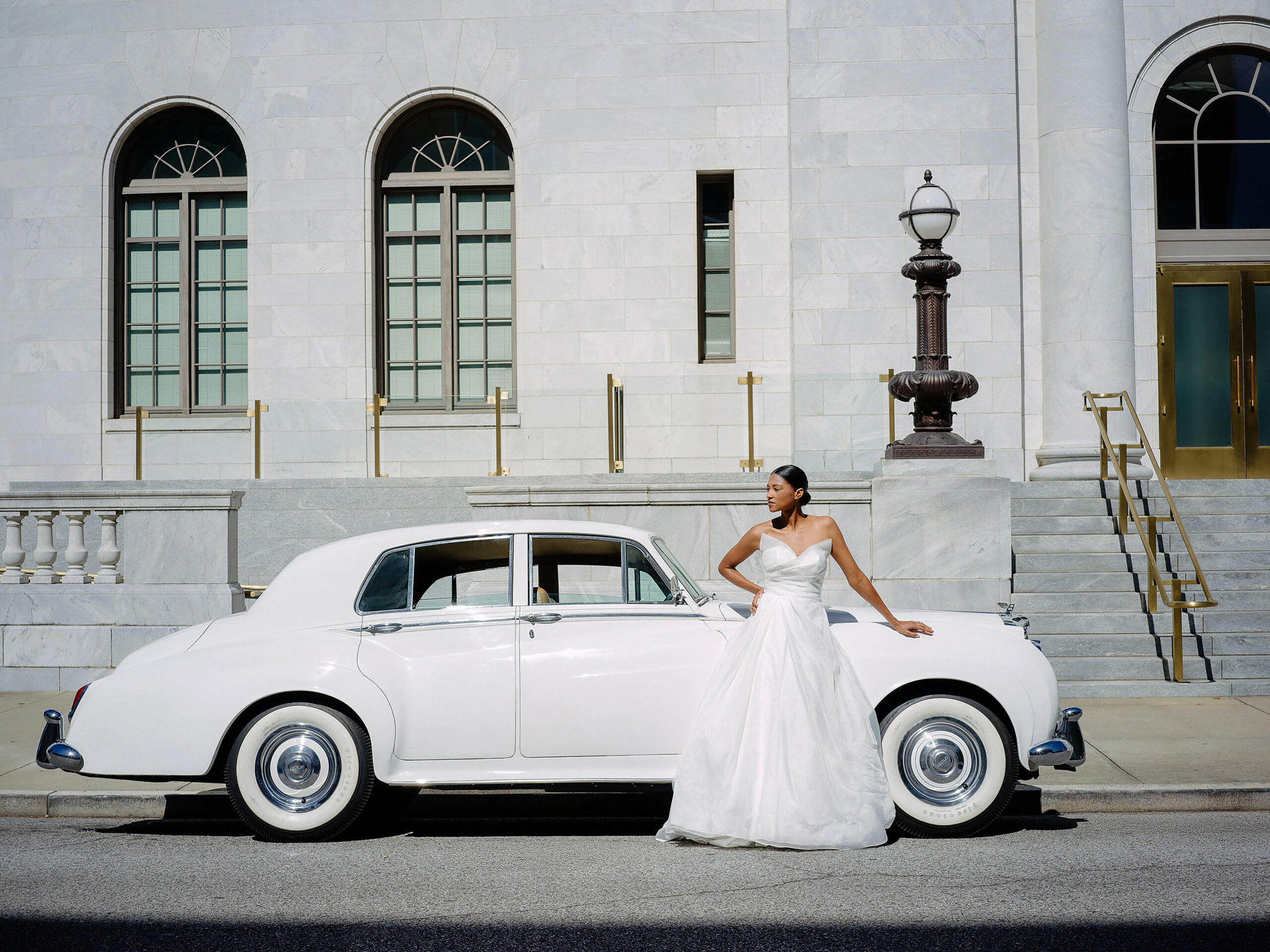 Beauty: Alyssa Elliott for Makeup Mel. Draping: Unique Event Elements. Jewelry: Diamonds Direct. Photography: Mo Davis Photography. Styling: Christopher Confero. Venue: Robert S. Vance Federal Building. Vintage Vehicles: Coats Classic Cars.