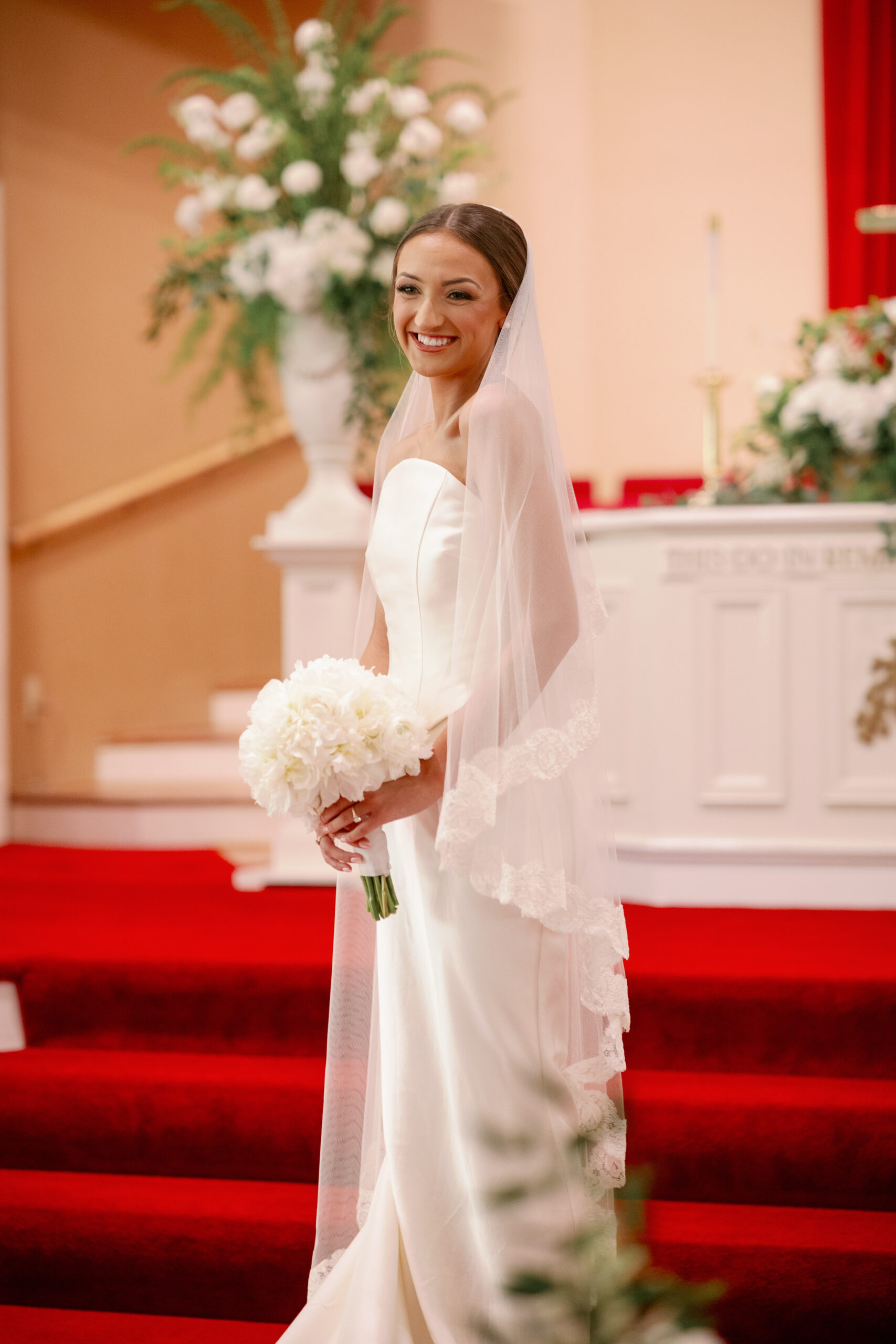 Bridal Gown: The Dress Theory. Bridesmaid Gowns: Something Blue Shoppe. Cake: Batter Up Cakes. Catering: The Southern Table. Ceremony Venue: Athens First Methodist Church. Floral Design & Décor, Lighting & Drapery, Wedding Planner: Joshua Manis – Home ReDecor. Groom’s & Groomsmen’s Attire: Bennett’s Clothing. Hair & Makeup: Whitney Strickland. Music/Entertainment: Smokey Jones and the Three Dollar Pistols. Photography: Carla Lawrence Photography. Reception & Rehearsal Dinner Venue: Canebrake Club. Registry: Shealeigh’s Gifts. Rings: Osborne’s Jewelers. Stationery: Paper by Peil. Wedding Content Creator: Bette Shallbetter.