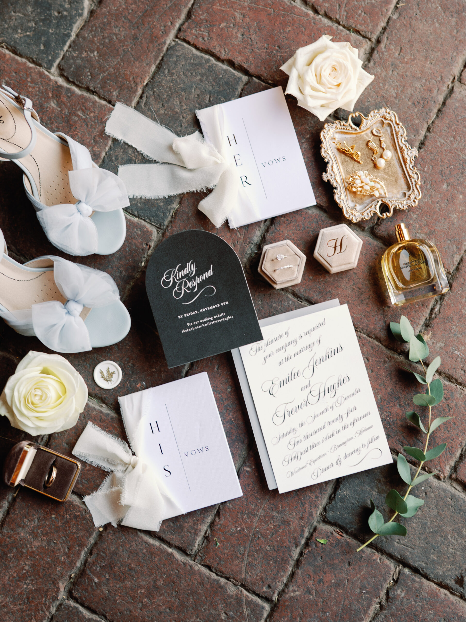 On November 18, 2023, Trevor popped the question. My best friend and her husband were in town and Trevor decided to make dinner reservations at our favorite restaurant in town, Blueprint on 3rd. We went to Hop City to grab a drink before our reservation and on our walk over to the restaurant, Trevor took me to the back patio and got down on one knee. My best friend was there to capture the entire thing on camera and then Trevor and I went inside to celebrate with champagne and a delicious meal while he told me all of the details and how long he had been planning our perfect engagement.” – Emilee
