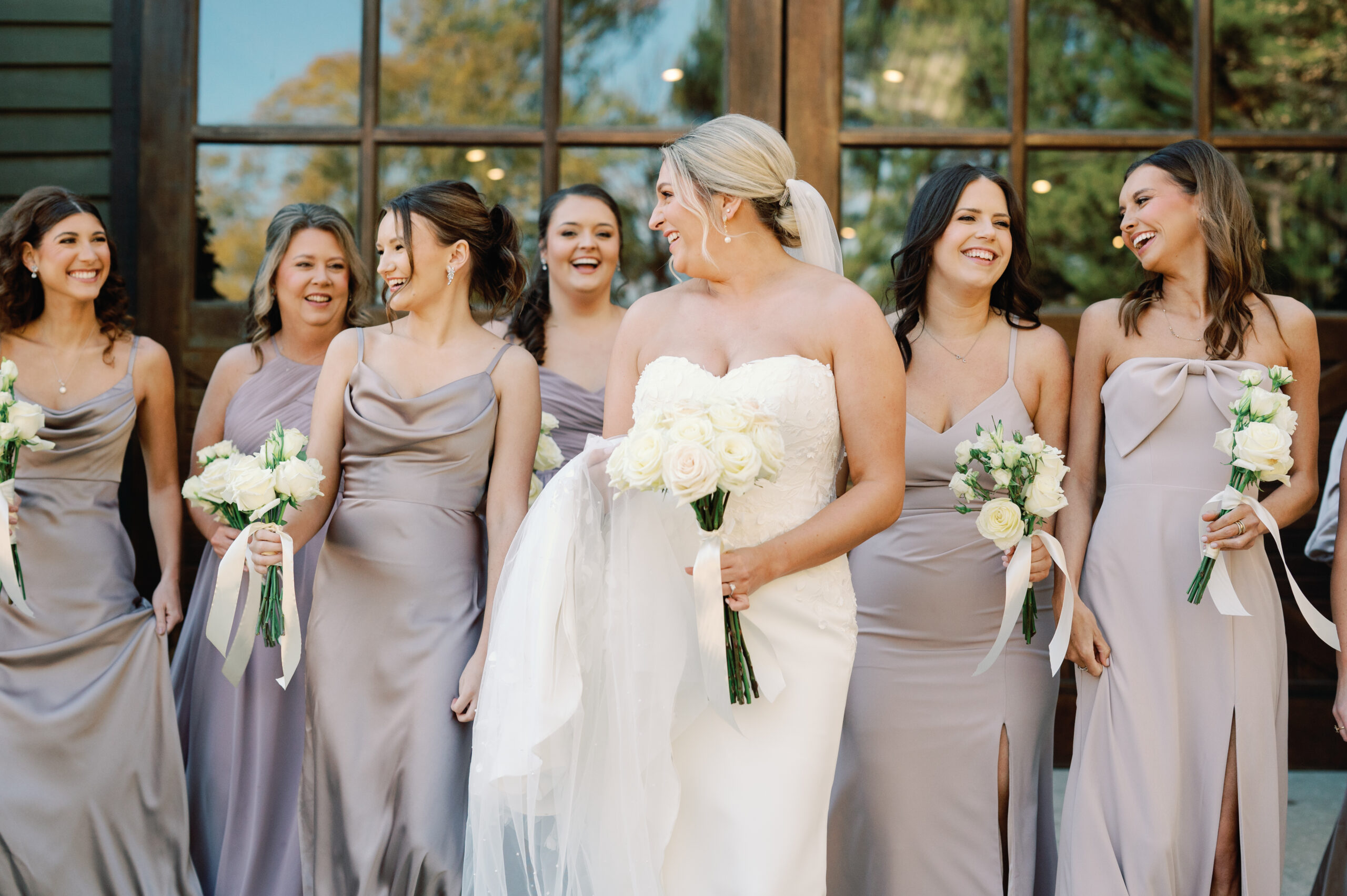Bridal Gown: Bella’s Bridal & Formal. Bridesmaid Gowns: Revelry. Cake: Laura Booker. Catering: Catering by Bellini’s. Ceremony & Reception Venue, Wedding Night Accommodations: Windwood Equestrian. Floral Design: Flower Moxie. Groom’s & Groomsmen’s Attire: Men’s Wearhouse. Hair & Makeup: Kathryn Wigley. Music/Entertainment: Not Your Average Party Band. Photo Booth: Elevated Entertainment. Photography: Lauren Gray Photography. Rings: Diamonds Direct. Stationery: Minted. Wedding Planner: Lyndsey Golden with Windwood Equestrian.