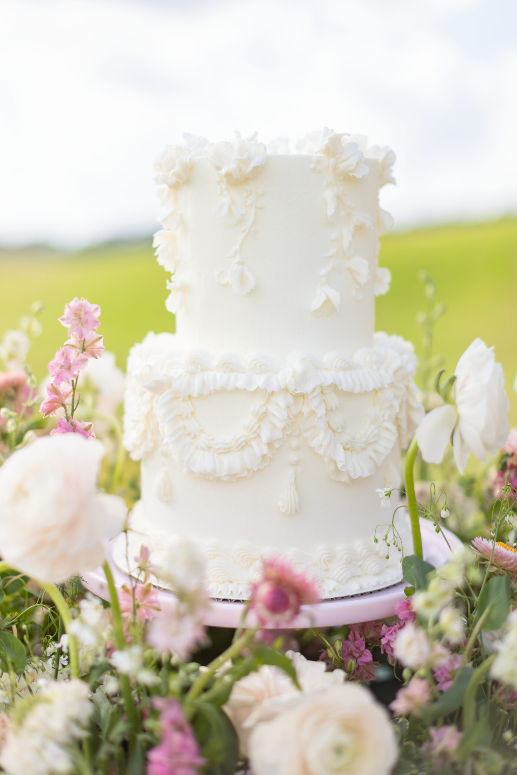 Bridesmaid Attire: Bella Bridesmaids. Cake, Floral Design: Sugar & Stems. Earrings: Bone & Arrow. Hair & Makeup: Raven Bibby for Makeup Mel. Linen: Favour Linens. Photography: Sam Jasper Photography. Styling: Christopher Confero. Tableware: Rambouillet Rentals. Venue: Renaissance Ross Bridge Golf Resort & Spa.