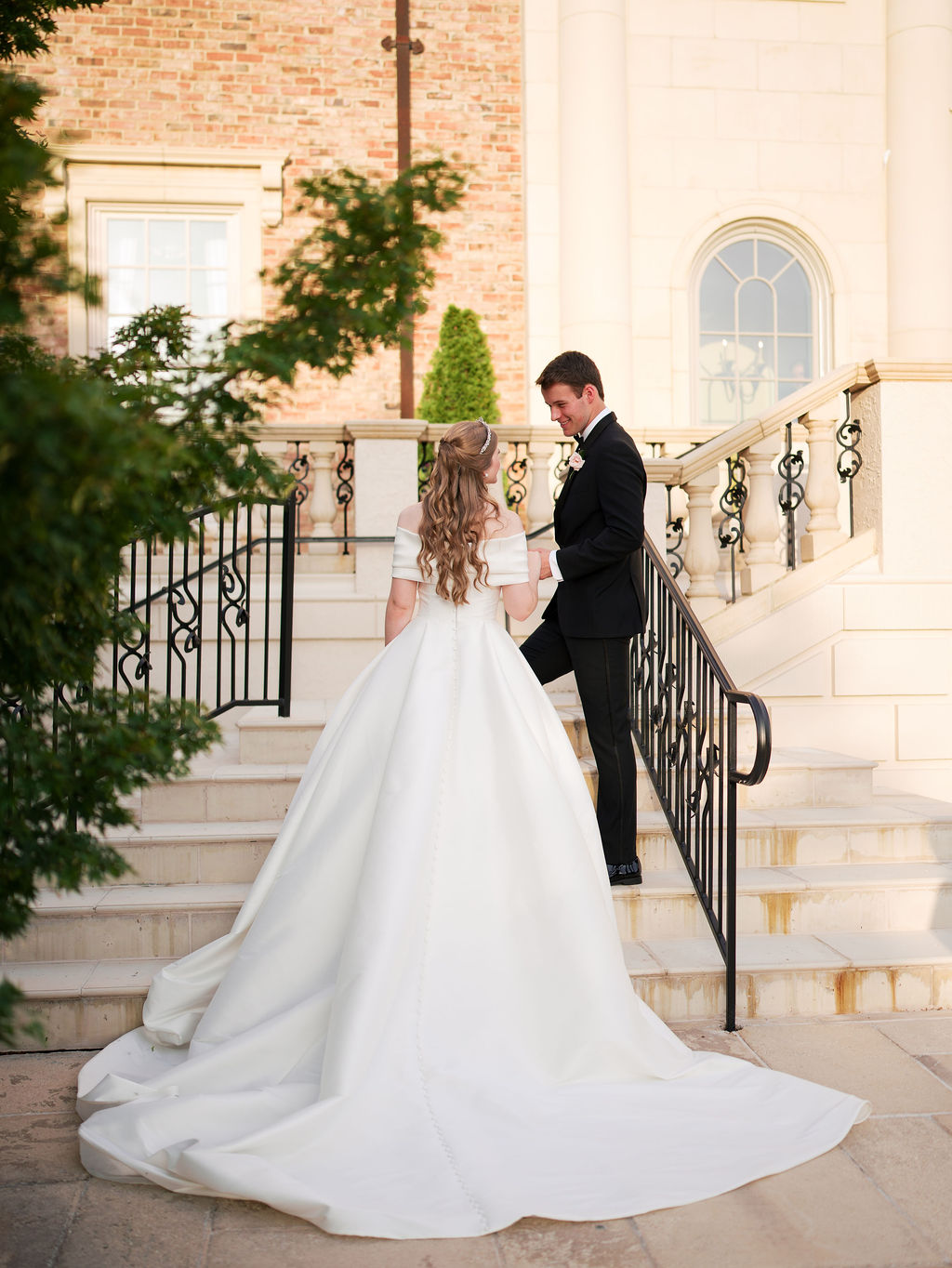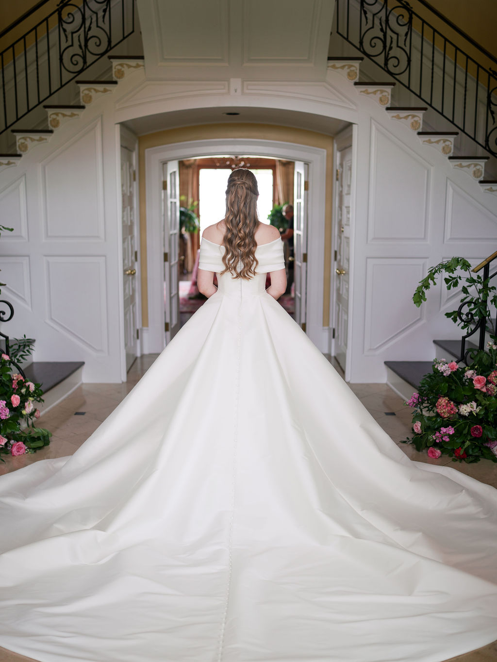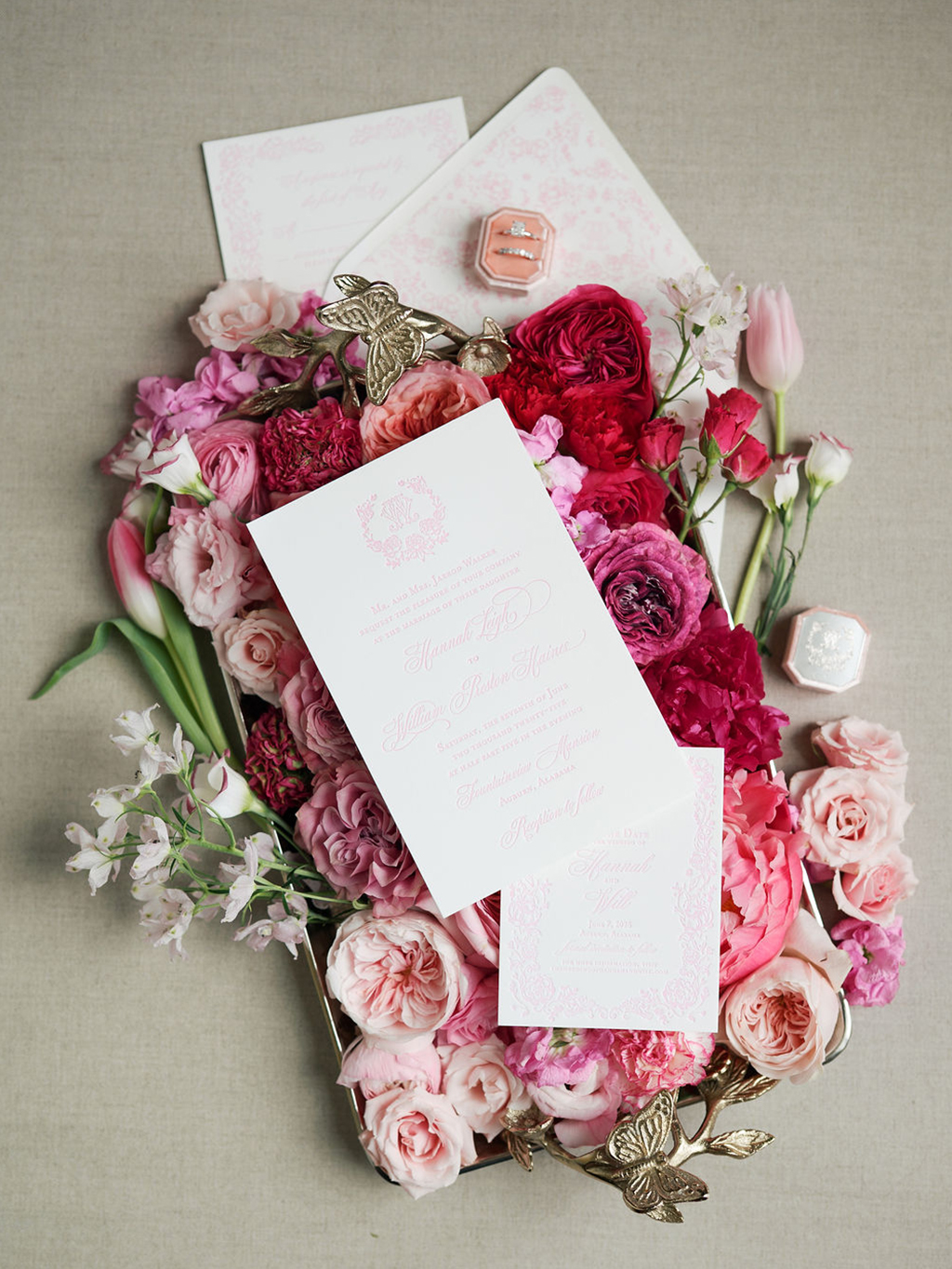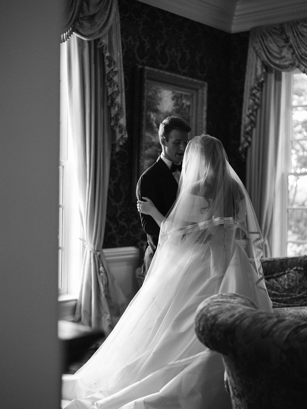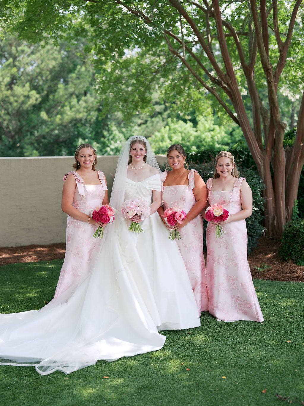 Bridal Gown: Kleinfeld. Bridesmaid Gowns: Bella Bridesmaids Birmingham. Catering: Terra Cotta. Ceremony & Reception Venue: Fountainview Mansion. Floral: Unorthodox Floral and Film. Groom’s & Groomsmen’s Attire: Men’s Wearhouse. Hair Stylist: Baylie Kyle – Halo Salon. Lighting & Draping Design: Auburn AV, Savvy Events. Makeup Artist: Lauryl Estelle. Linen: Prestige Linens, Urquid Linen. Music/Entertainment: Cahaba River Strings, DJ Mason. Photography: Haint Blue Collective. Registry: Williams Sonoma. Rings: Archer International. Stationery: Ross Paper Co. Transportation: Auburn Limo. Wedding Planner, Event Rentals: Savvy Events. Videographer: Easton Film Co.