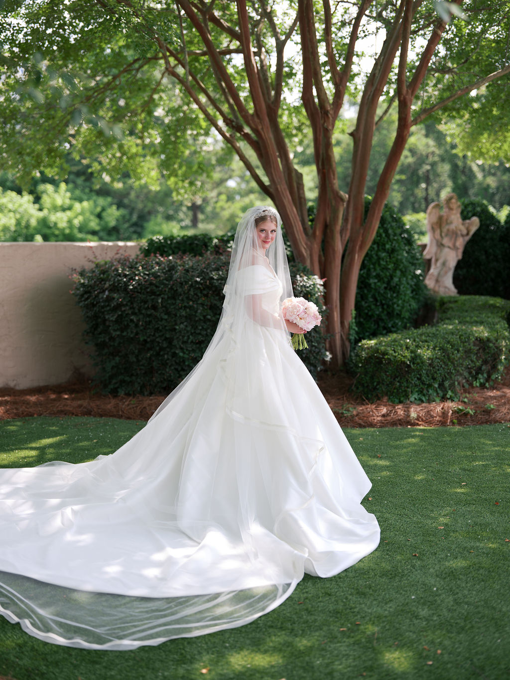 “Will and I are high school sweethearts. We met in school and went to a lot of the same after-school activities, and we started dating when we were 16 and 17. I graduated high school and went to Auburn University, and Will did the same the next year. We stayed busy throughout college as I pursued a degree in English Education and Will in Aerospace Engineering while he also worked for the football team. During February and March of my senior year, we had been dating four and a half years, Will took me on a few special dates without popping the question. One Saturday in March, my parents were taking me to a winery for a family member’s birthday celebration. Will couldn’t come due to working for the team. On the way there, my parents told me we were going to be getting there a bit early, so we were going to stop at a garden to waste some time. We got to the garden, I put my name in with the front desk to do a tour, and they handed me a letter. I opened the letter and instantly started crying because I recognized the handwriting as Will’s. The letter said he was waiting in the garden for me. I was so excited – I knew this finally had to be the moment! A trolley took me to where Will was in the garden, and he proposed. It really was a fairytale in the garden dream come true.” – Hannah