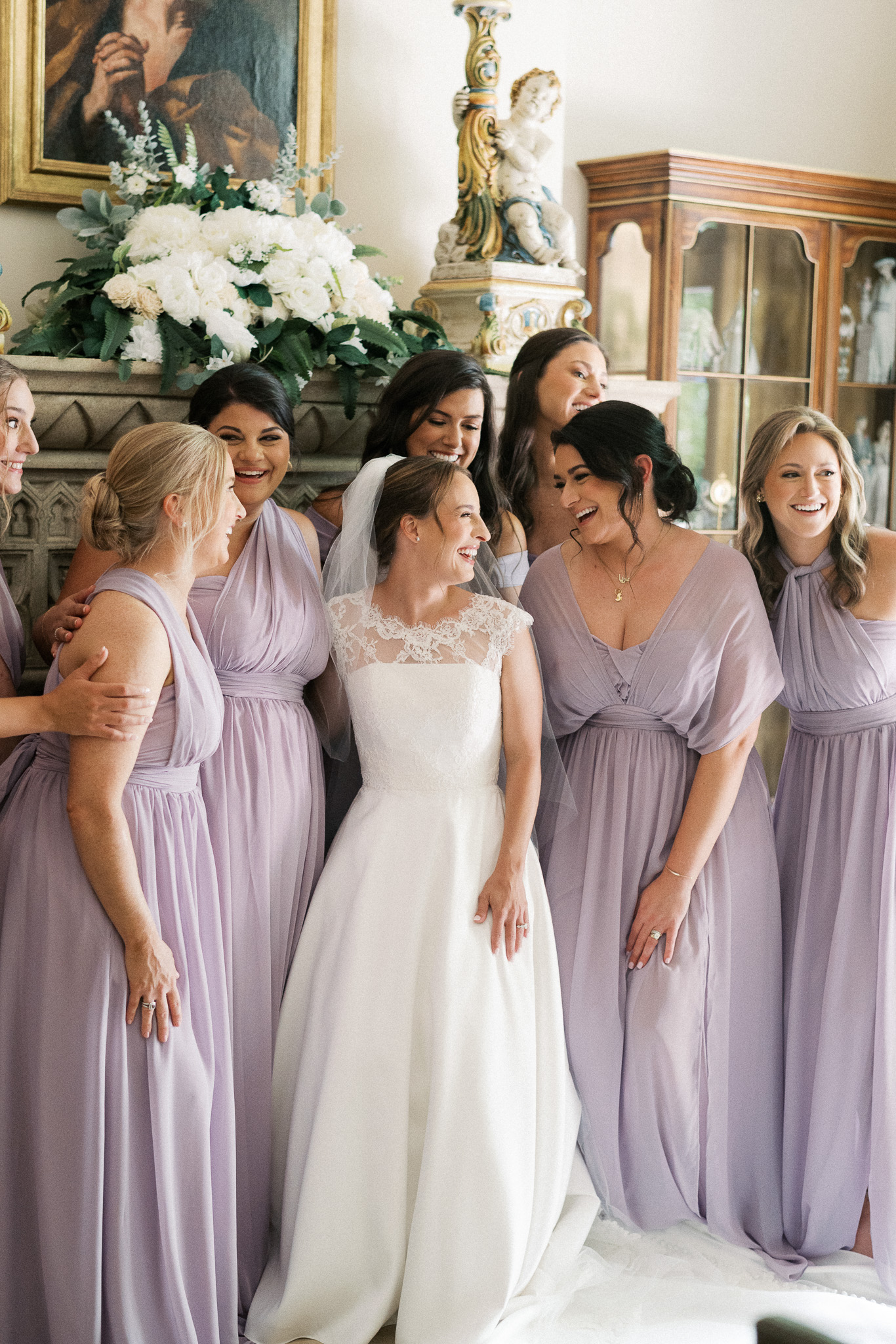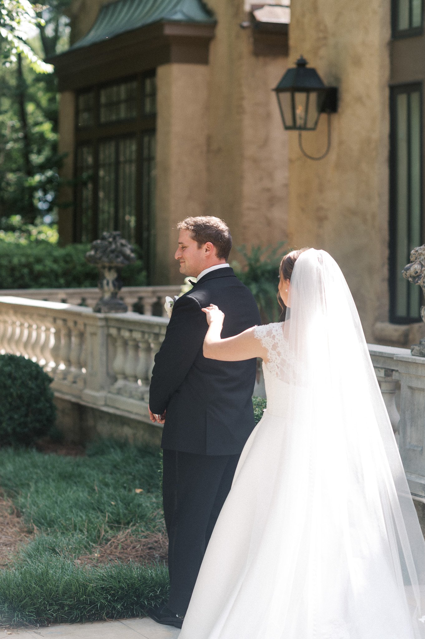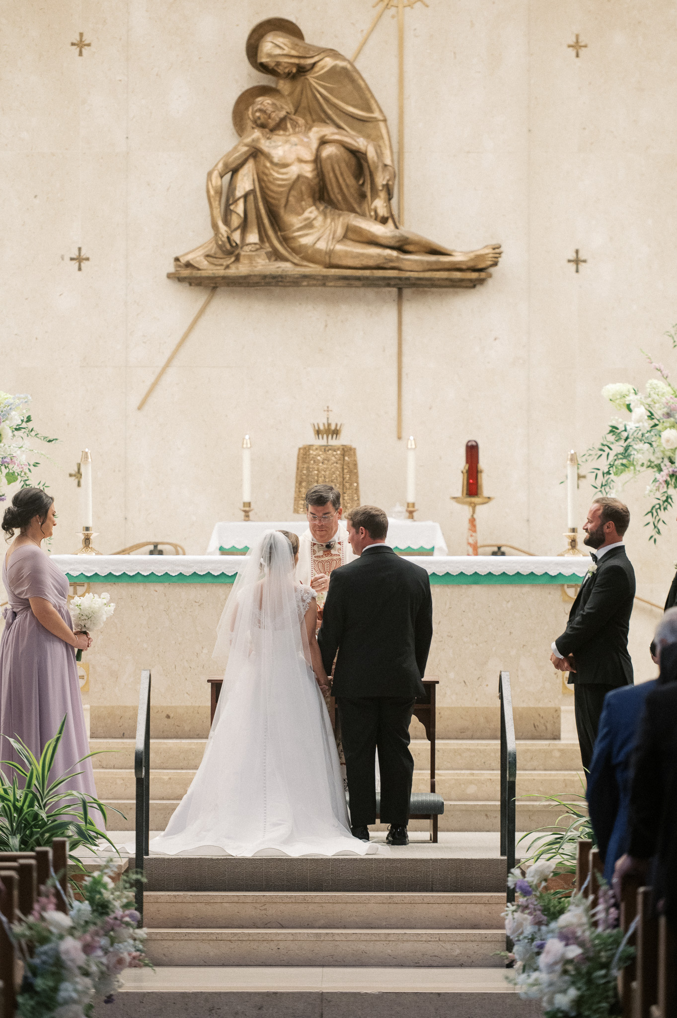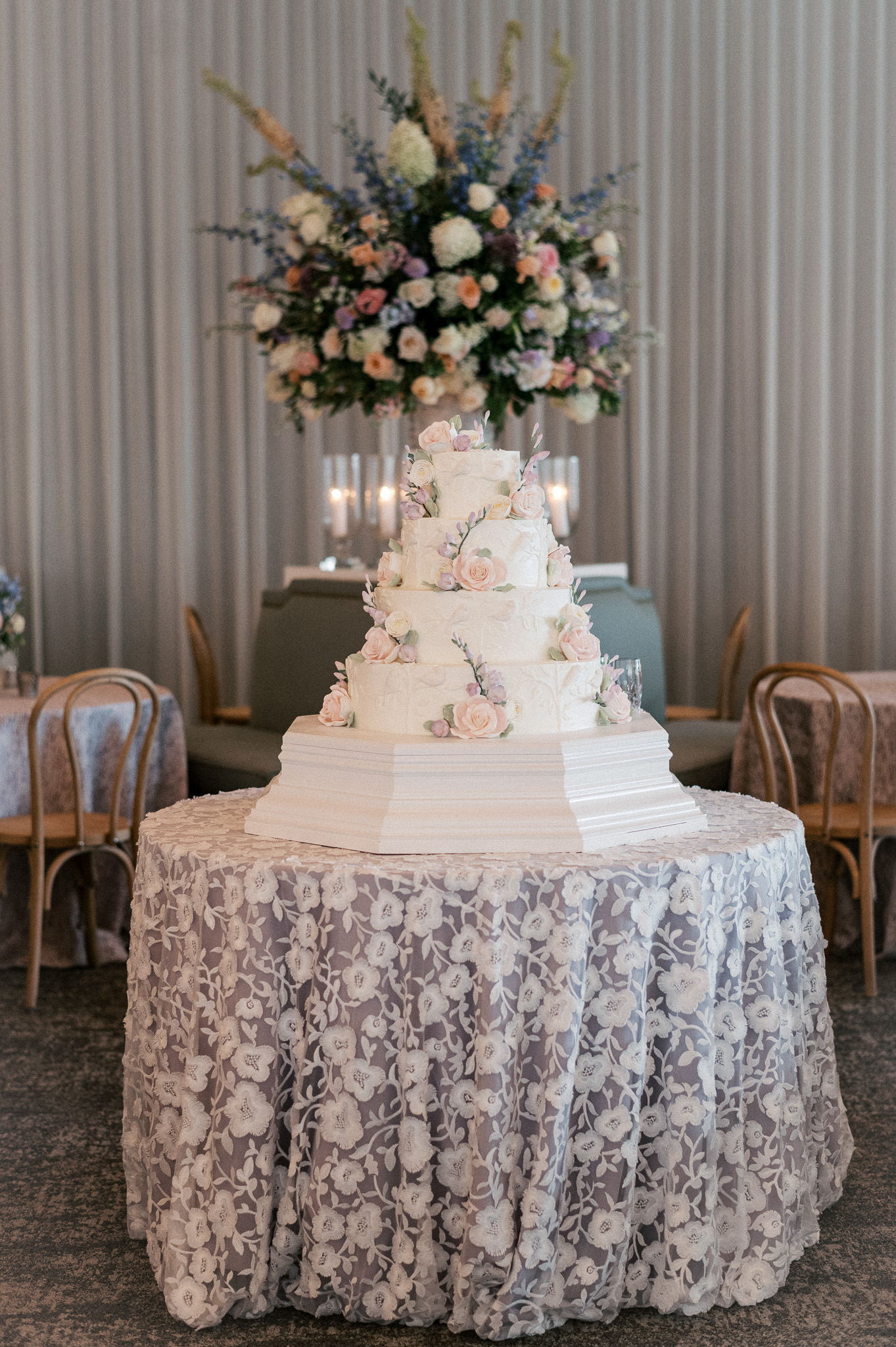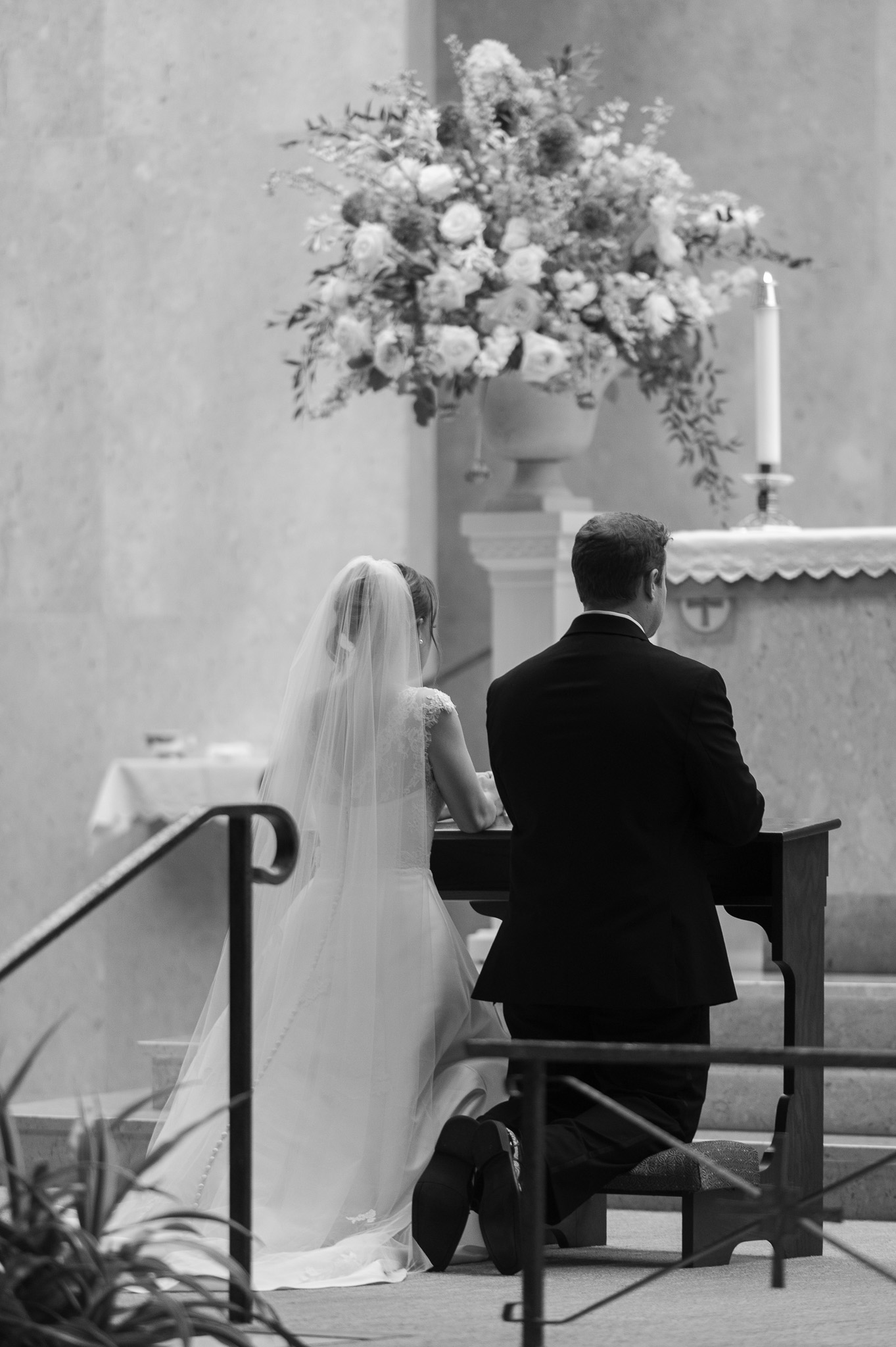 Bridal Gown: Carriage House Weddings. Bridesmaid Gowns: Birdy Grey. Cake: Barb’s Cakes. Ceremony Venue: Our Lady of Sorrows Catholic Church. Catering, Reception Venue: The Club. Dance Floor Wrap: Southern Event Wraps. Floral Design: Marigold Designs. Groom’s & Groomsmen’s Attire: Mr. Burch Formal Wear. Hair Stylist: Mandie Powell. Makeup Artist: Be-Loved Beauty. Lighting & Draping: AG Lighting. Linen: BBJ La Tavola, Stradley Davidson, Nuage Designs. Music/Entertainment: Universal Crush with East Coast Entertainment. Photography: Hannah Miller. Rentals: PropHouse, Soho Event Rentals. Rings: Southeastern Jewelers, Anthony and Co. Jewelers. Stationery: Empress Stationery. Transportation: Rare Transportation. Wedding Planner: Becky’s Brides.
