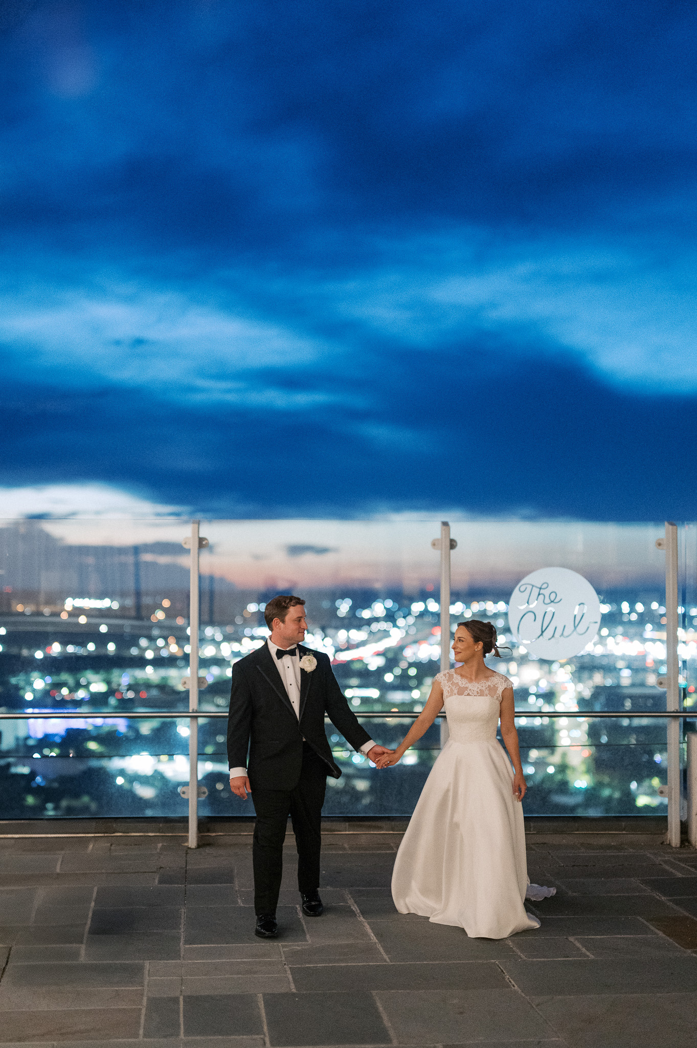 “For our proposal, Frankie told me we were going on a nice dinner date. When he got to my house, I thought we were late so I tried to get him to hurry out the door, but when I turned around, he was on one knee. The surprises continued with him taking me to The Club where our families were waiting with champagne and an impromptu photoshoot. The night ended with the two of us eating dinner together at Hot and Hot Fish Club. It was a perfect evening!” – Jessica