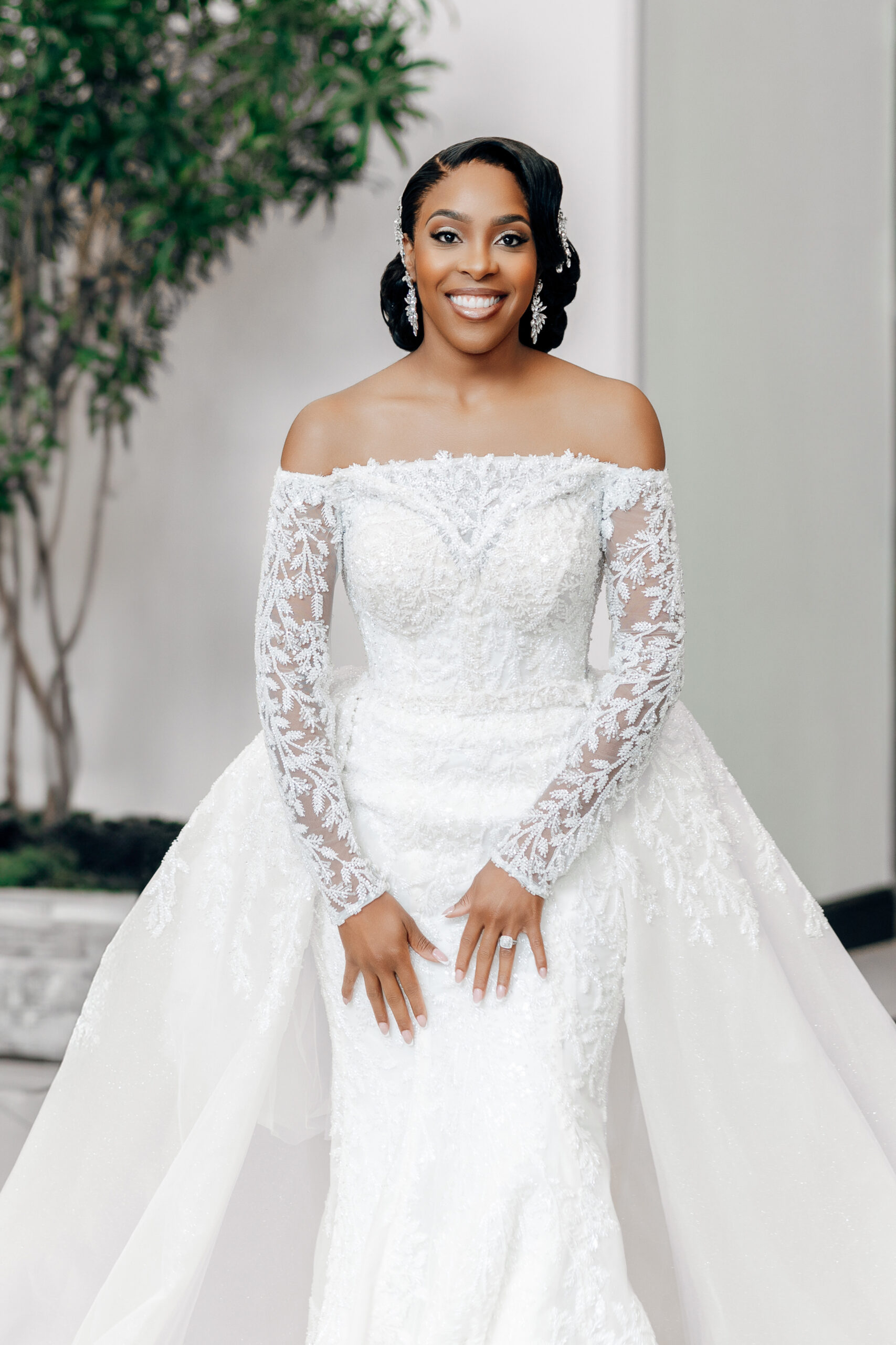 Bridal Gown: Bella’s Bridal & Formal. Bridesmaid Gowns: Hebeos. Cake: Publix. Catering: Savoie Catering. Ceremony and Reception Venue: Soiree Event Gallery. Floral Design, Linen, Rentals: Luxe Decore Events. Groom’s & Groomsmen’s Attire: TREŚ Fine Clothing. Hair & Makeup: Thairapy Beauty Bar. Music/Entertainment: Atmospheric Effects, DJ Tedarius Carter. Photography, Videography: Victor Cole Photography. Rings: Zales. Transportation: Dream Drives BHM. Wedding Planner: Allyson Perry, Tasha Hogan.