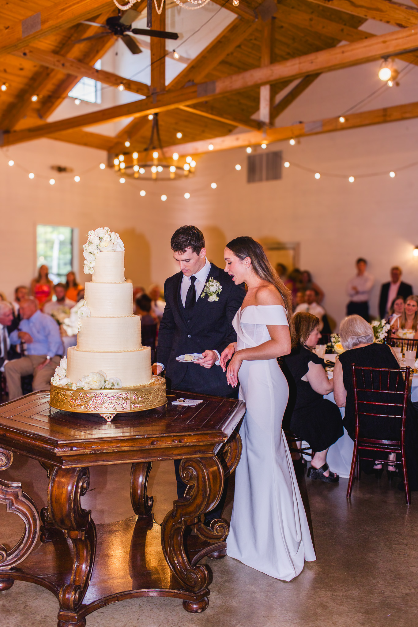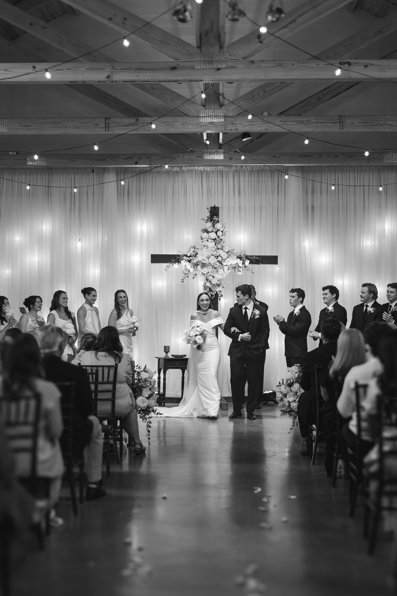 Bridal Gown: Maggie Louise. Bridesmaid Gowns: Azazie. Cake: Olexa’s Cakes. Ceremony, Reception, and Rehearsal Dinner Venue: The Barn at Shady Lane. Catering: Tre Luna. Floral Design: Stems & Styles. Groom’s & Groomsmen’s Attire: Men’s Wearhouse. Hair & Makeup: Haleigh Amend. Music/Entertainment. Superior Sound Entertainment. Photography, Videography: Jamison Skinner Photography. Rings: Steed Jewelers. Stationery: Fine Paperwork. Wedding Planner: Rachael C. Milner. Wedding Night Accommodations: Ross Bridge Resort.