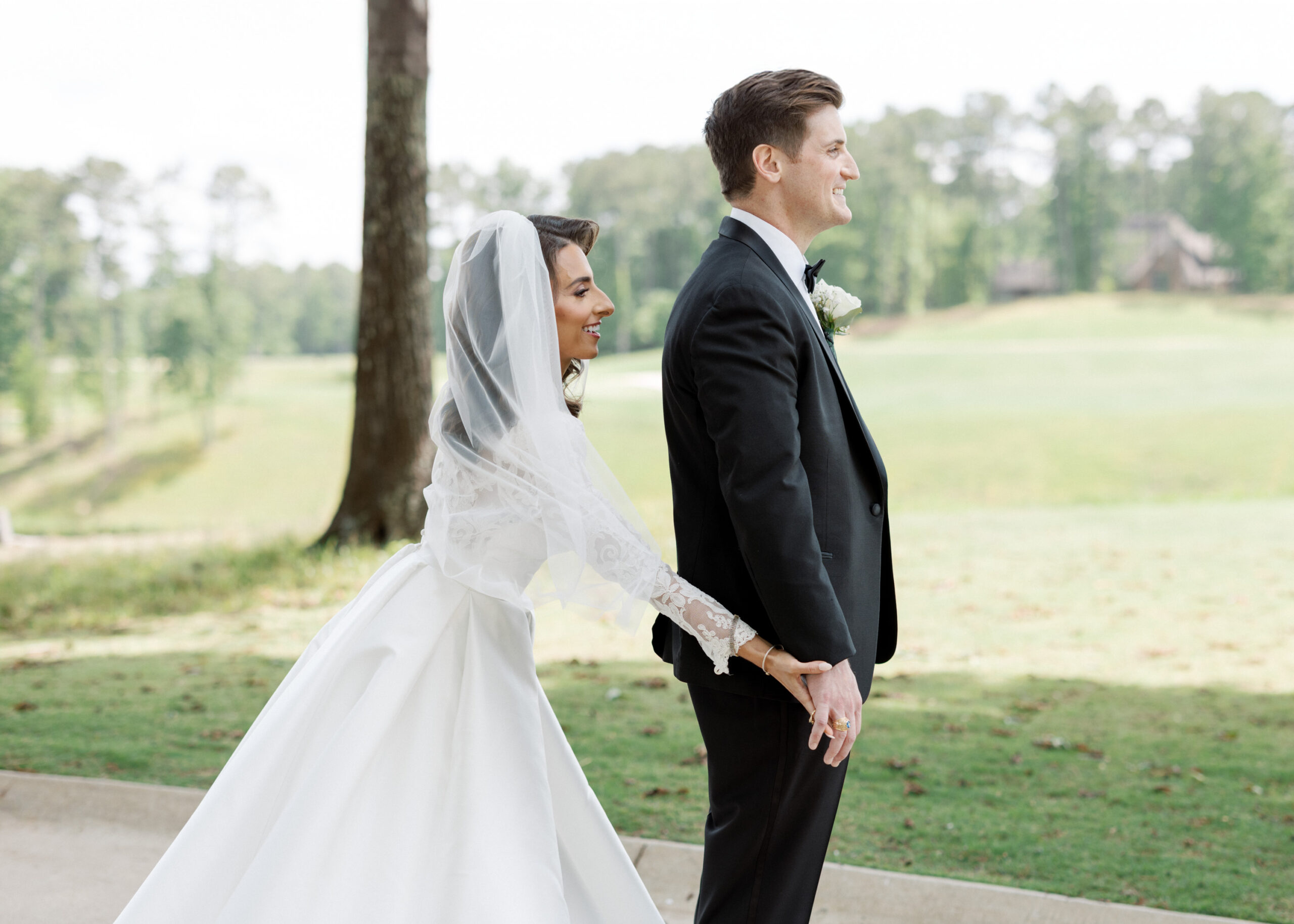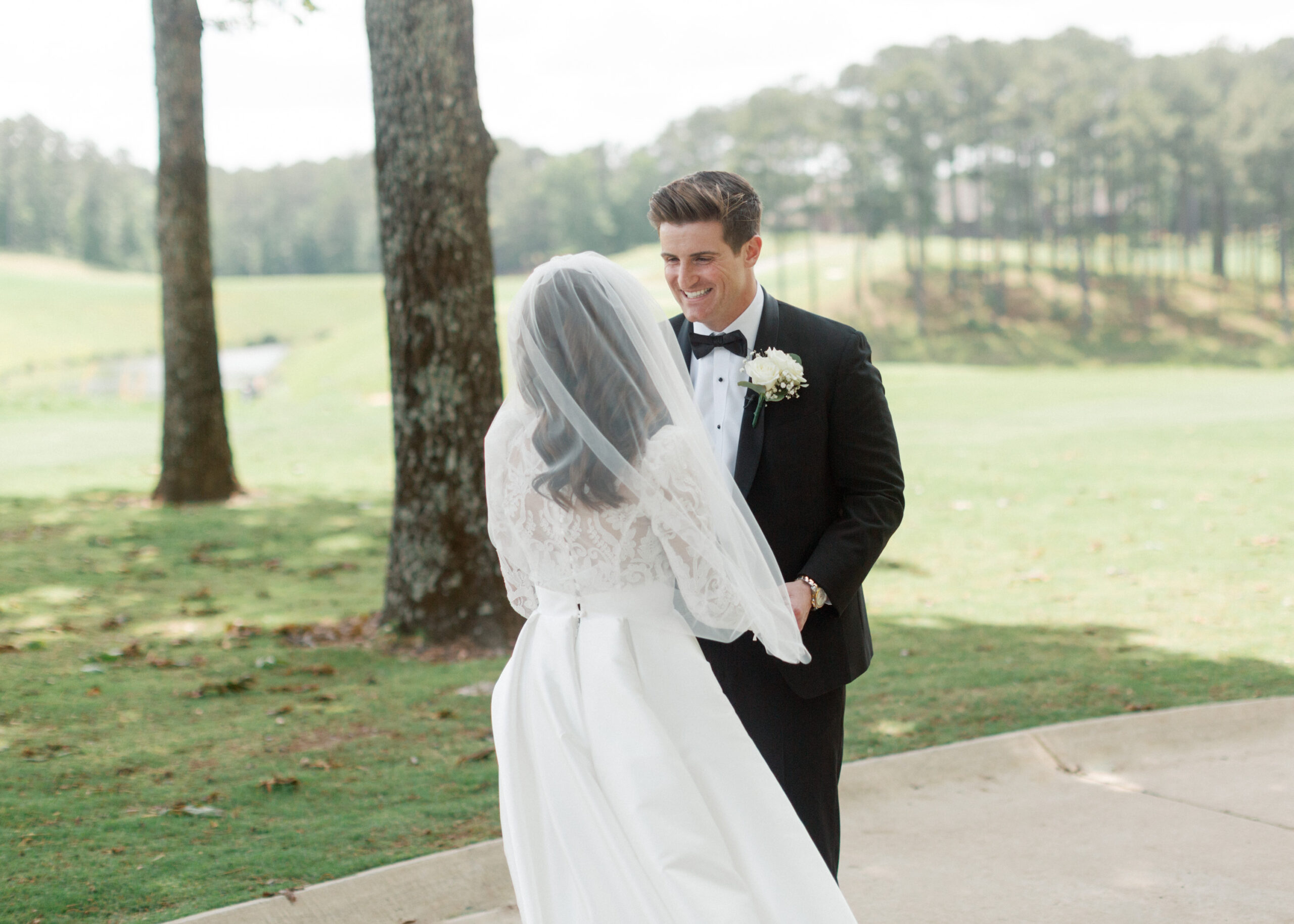 After a year of dating, EJ proposed on the golf course at Shoal Creek, at his favorite hole. I was completely surprised and elated. It was the easiest and happiest yes. He took the surprise one step further by taking me to his parents’ home, where both of our families and closest friends were waiting to celebrate with us.” – Lauren