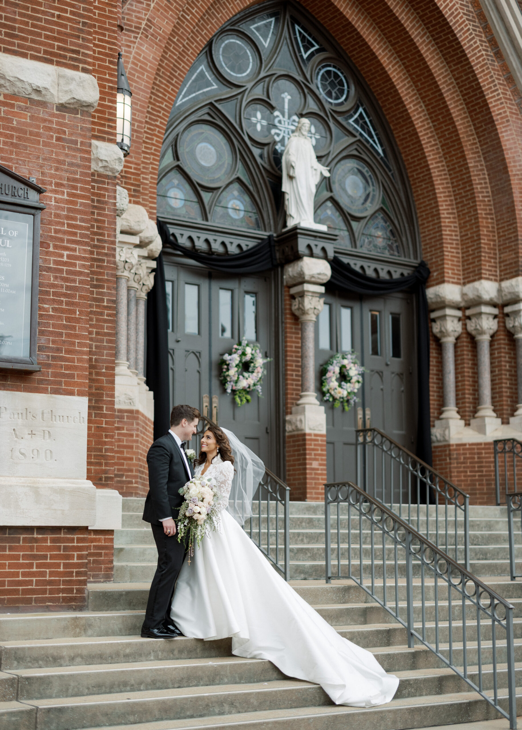 “The way EJ and I met was a blink-and-you’ll-miss-it moment. We met at the church where we were later married, The Cathedral of St. Paul, which has been a part of my family’s life for more than 70 years. He glanced at me during Mass and caught my eye; we introduced ourselves before leaving, and the rest is truly history. We immediately fell in love, which is very surreal. We’re both Catholic, Italian, and we even share the same last name, with no relation! (I’m thankful I dodged the legal paperwork.) Faith was the reason we met, and it was the focus of our wedding. Everything else fell naturally into place.