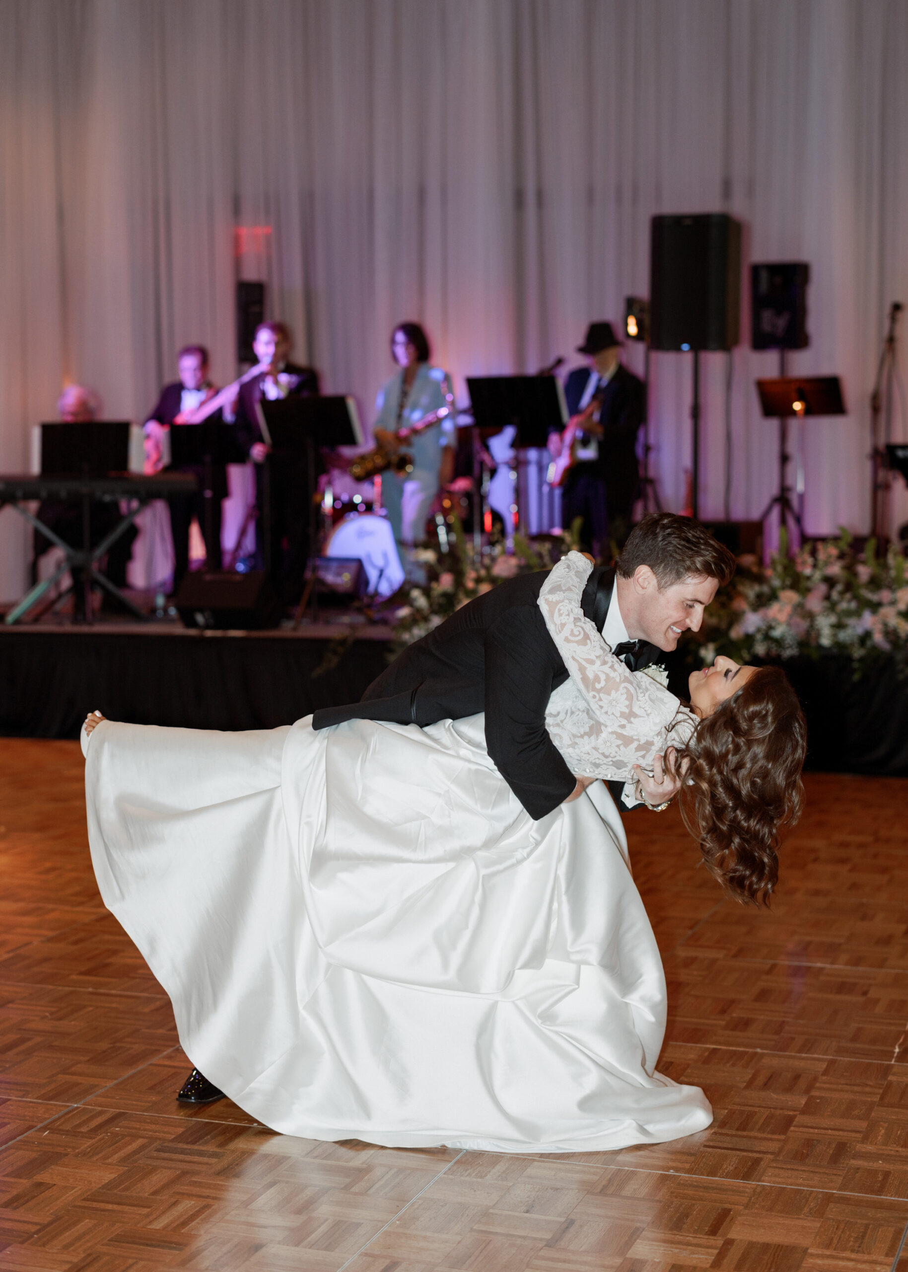 We had two bands at the reception – big band and funk music. The first was The Chekmates, the original variety band in town, led by my late grandfather, Anthony ‘Tony’ Marino, Sr., and now led by my Uncle Anthony. They learned every song EJ and I requested. One of my brothers joined them to sing our first dance, play saxophone for another number, and lead the big ‘Italian Wedding Song.’ To have my family create that experience for us was the greatest gift we could have received. EJ and I love to dance. After (and during) our seated dinner, we never left the dance floor. We were so happy we spent time enjoying each other and dancing with all of our guests!
