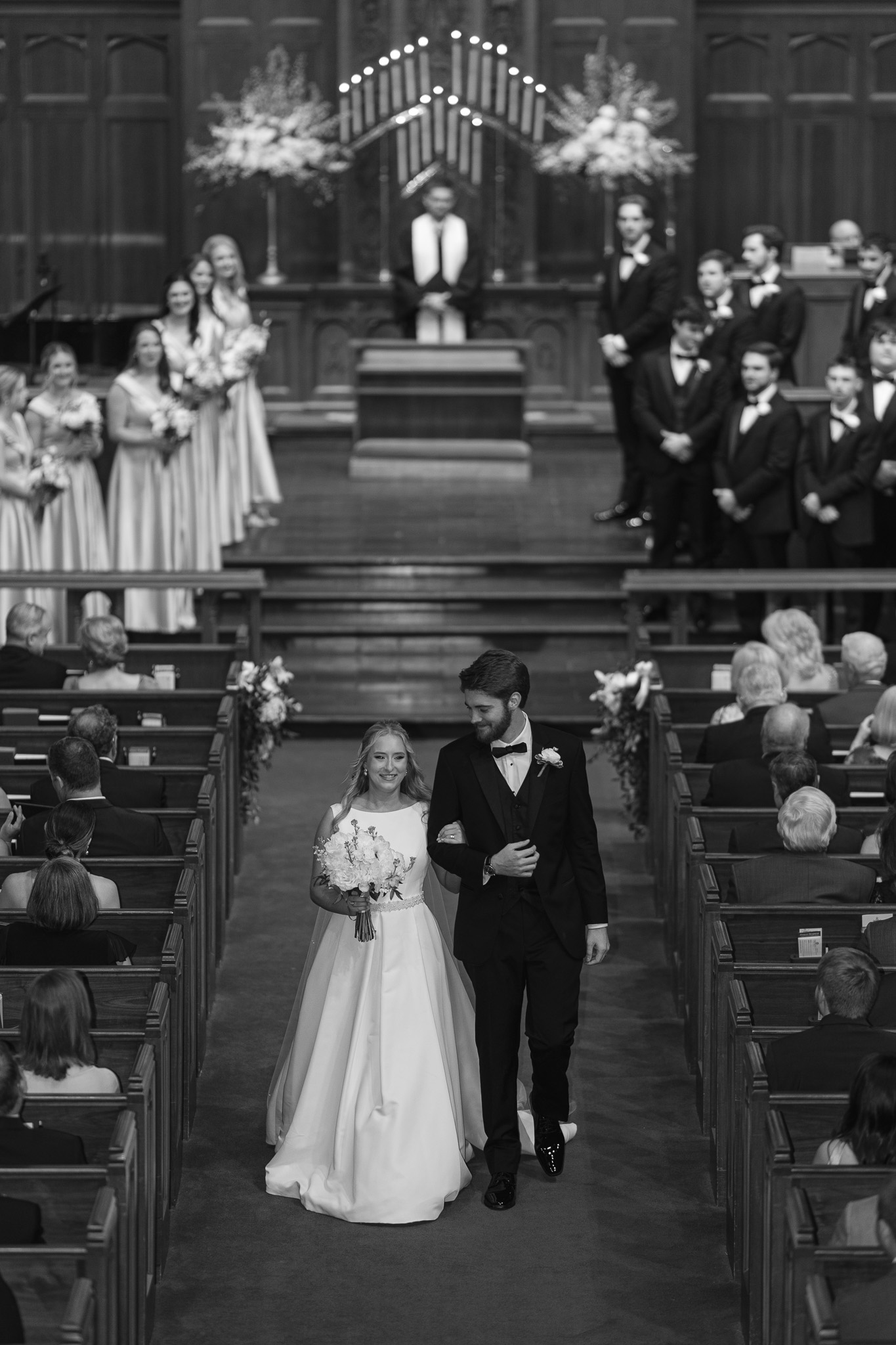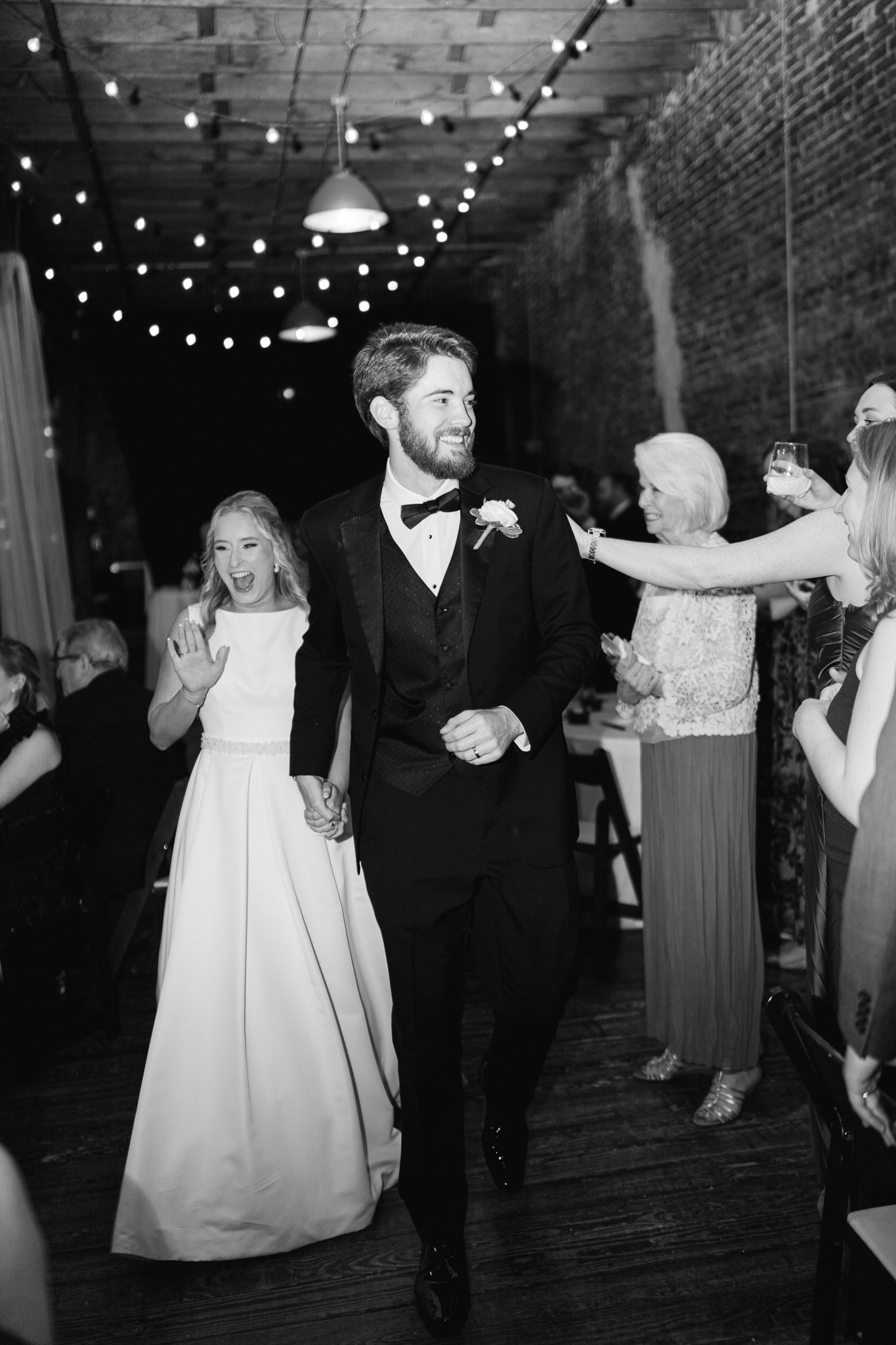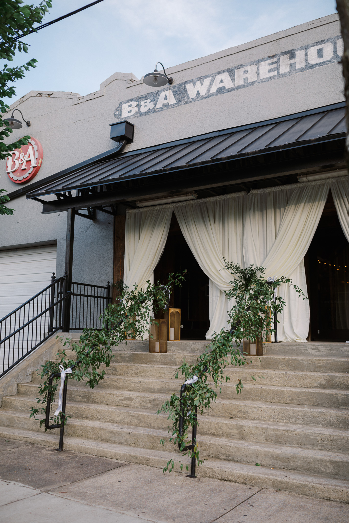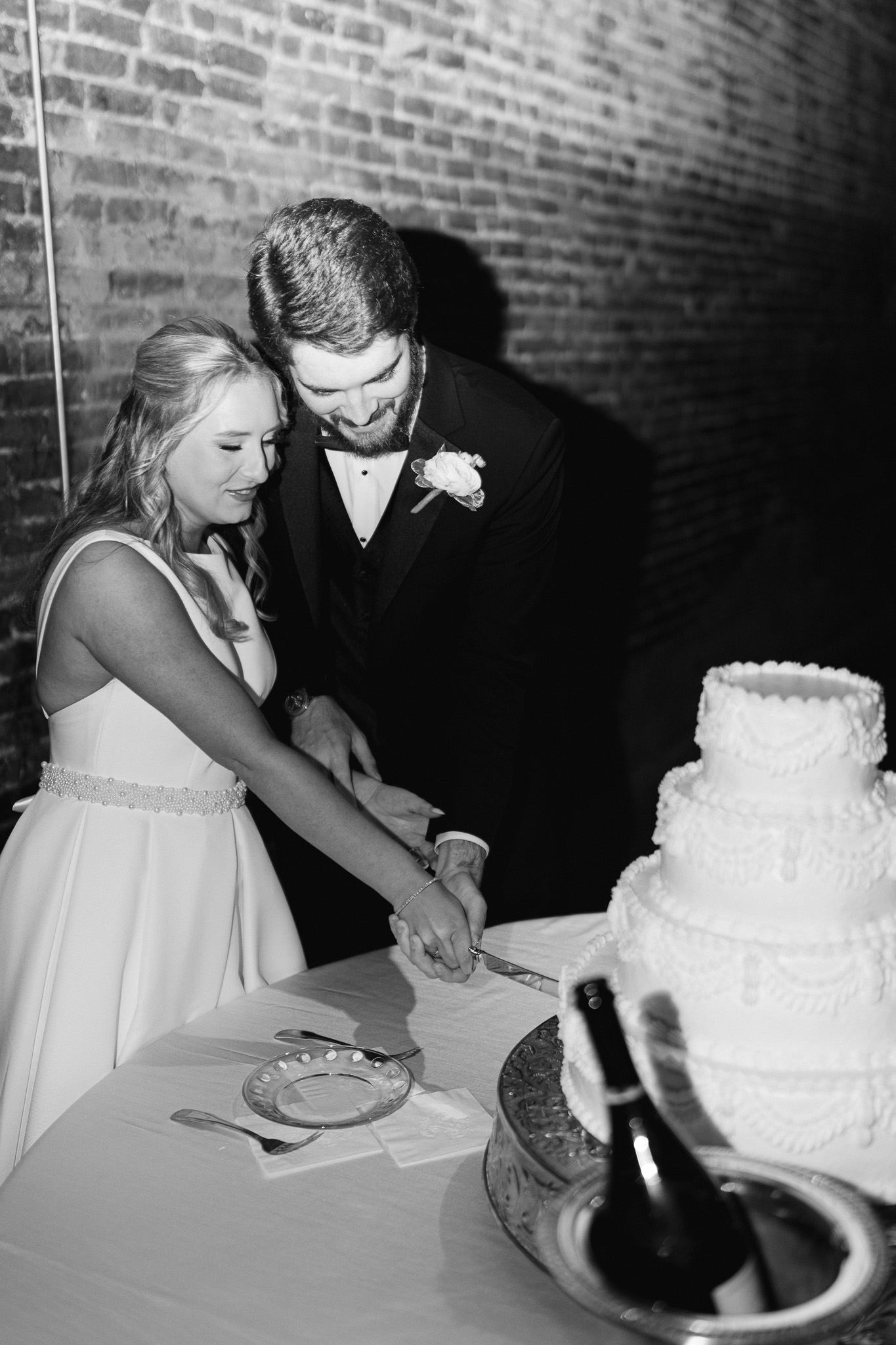 Bridal Gown: Bustle Gowns. Bridesmaid Gowns: JJ’s House. Cake: Cakes by Janice. Ceremony Venue: Trinity United Methodist Church. Catering, Reception Venue: B&A Warehouse. Floral Design: Jim Barron. Lighting & Draping Design, Rentals: D4 Events. Groom’s & Groomsmen’s Attire: Men’s Wearhouse. Hair & Makeup: Isabel Estes. Music/Entertainment: Emerald Empire Band. Photography: Prestley Bramlett Clark. Stationery: Please Reply. Transportation: Accent Luxury Limo. Wedding Planner: Jill Sims. Wedding Party Attire: The Clothes Tree by Deborah.