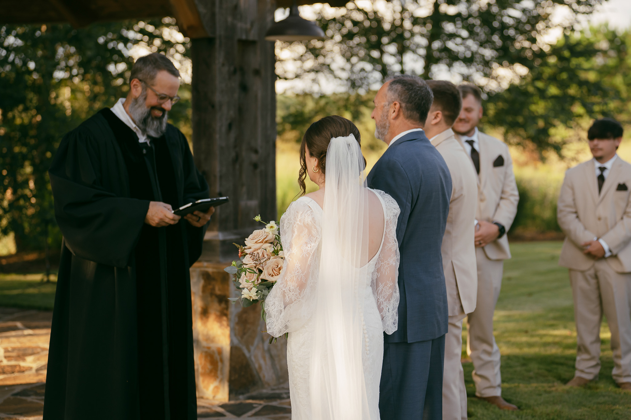Bridal Gown: The Something Blue Shoppe. Bridesmaid Gowns: Azazie and Birdy Grey. Cake: Cakes by Elise. Catering: The Happy Catering Co. Ceremony, Reception & Rehearsal Dinner Venue: Otter Creek Farmstead. Floral Design: Sugar and Stems. Groom’s & Groomsmen’s Attire: Mr. Hicks Mens Wear. Hair & Makeup: Beauty by Bel. Music/Entertainment: DJ Ballallday. Photography: Hannah R.B. Photography. Rings: Young Jewelers. Wedding Planner: Evermore Events.