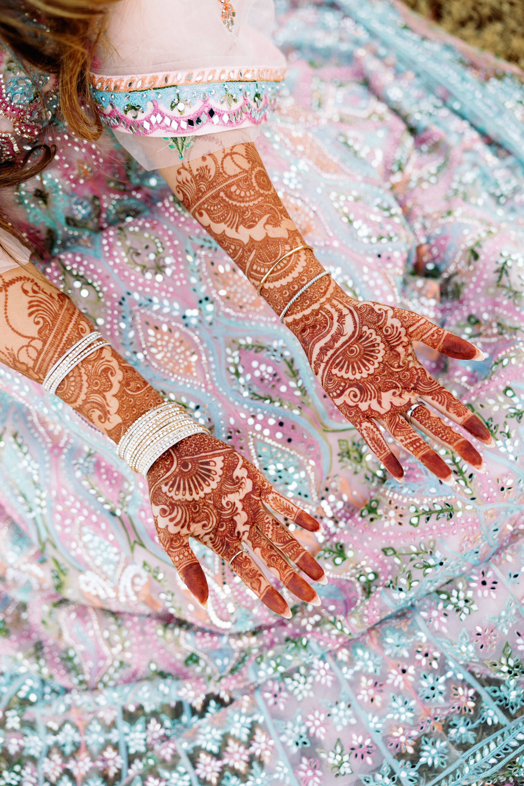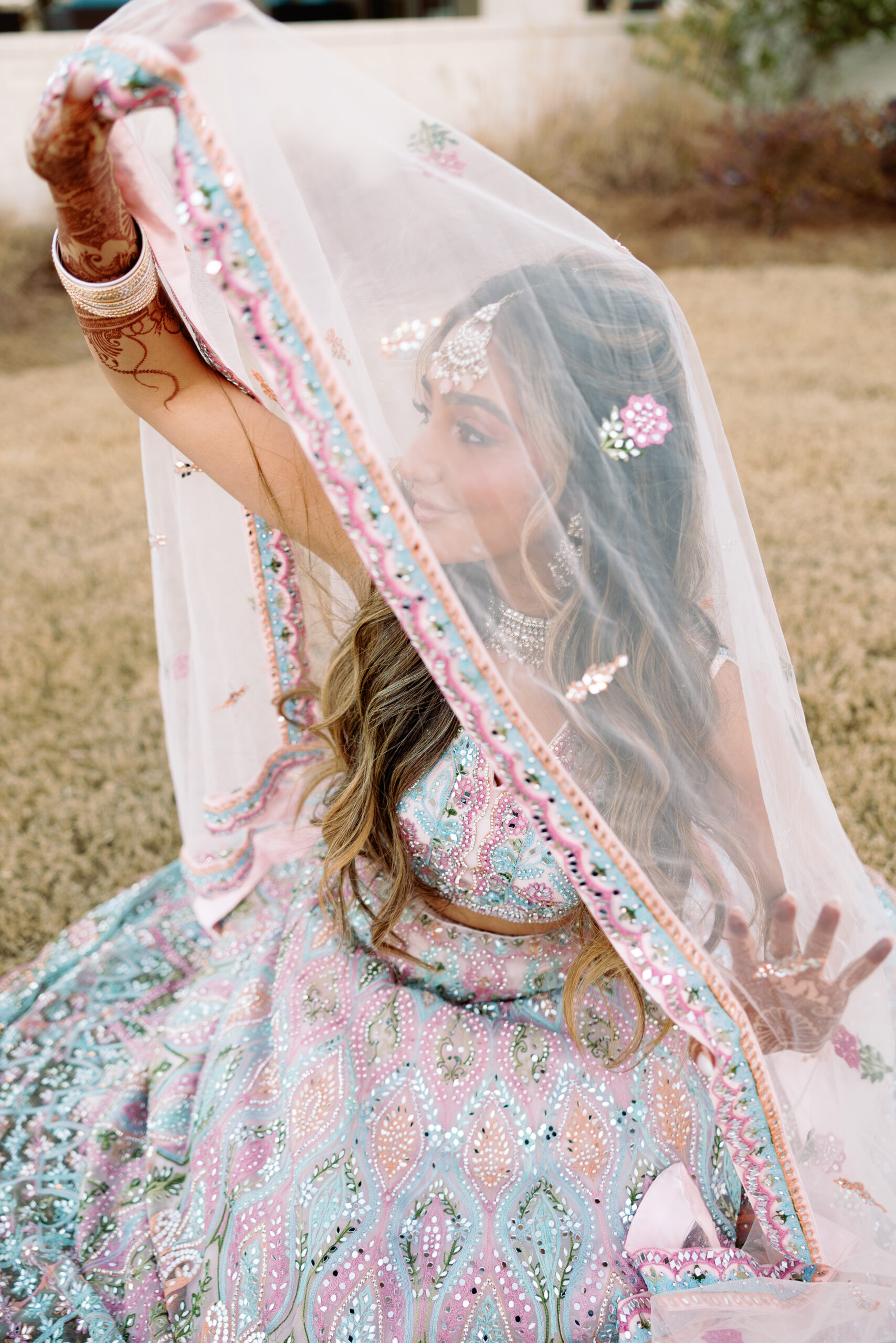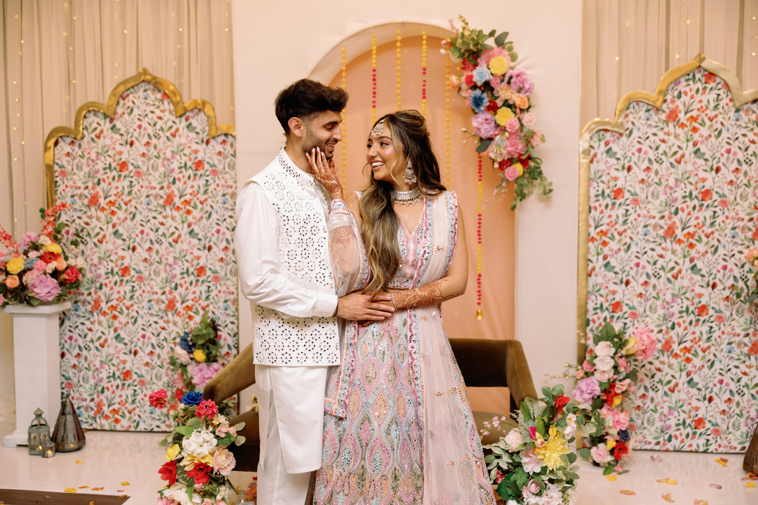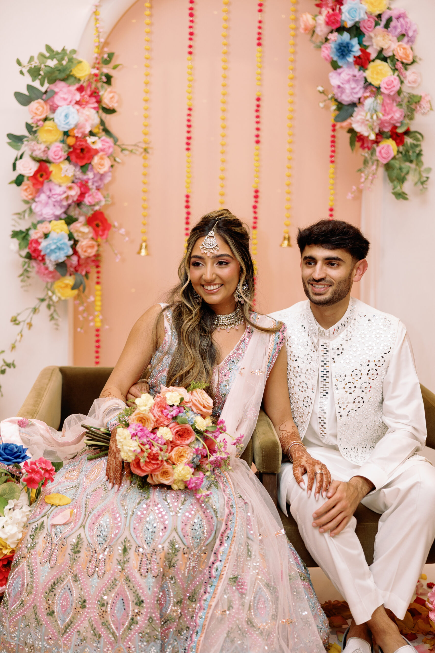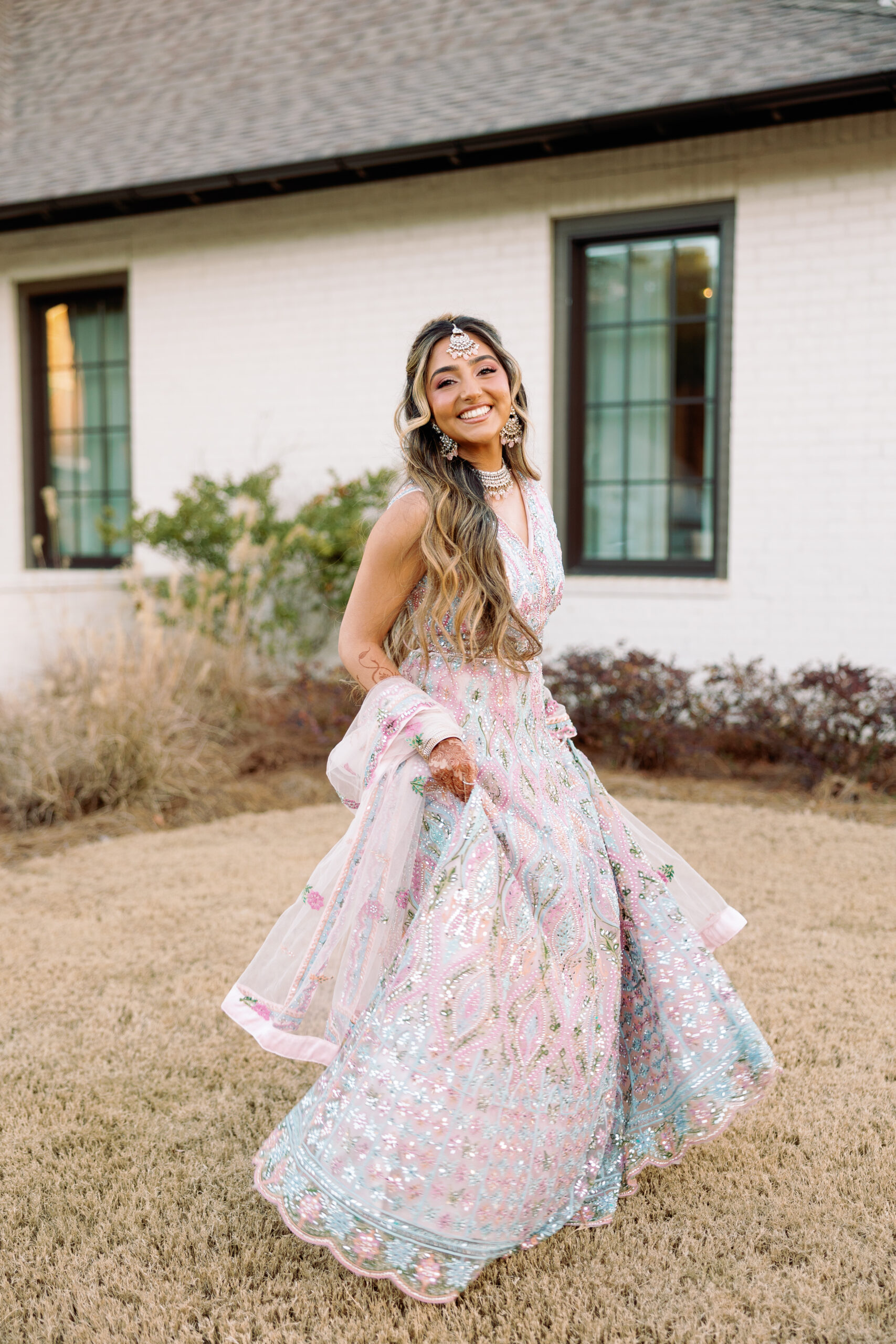 Catering: Bawarchi Indian Cuisine. Event Planning & Desserts: Events by Soha. Hair Stylist: Styled X Paige. Henna Artist: Asmita Minsariya. Makeup Artist: Haleigh Amend Beauty. Photography: Livey Ivey Photography. Videography: Amit Bharwani Photography.