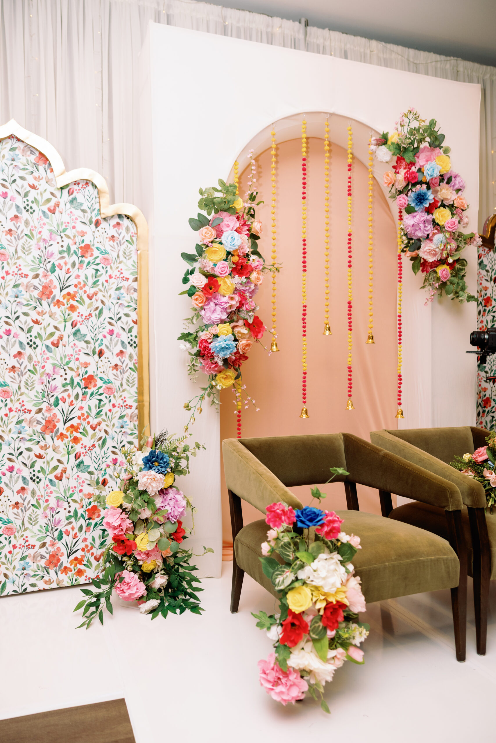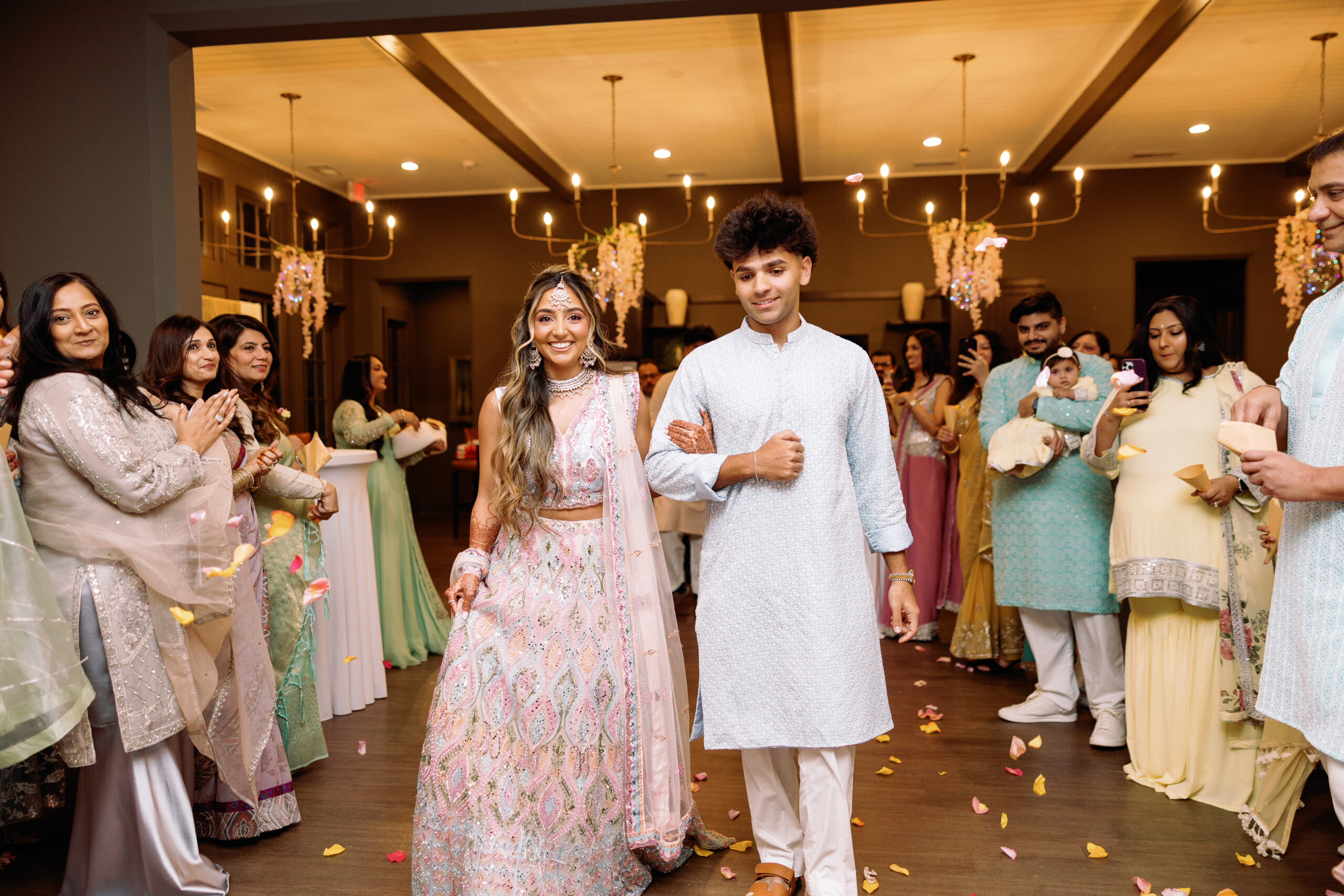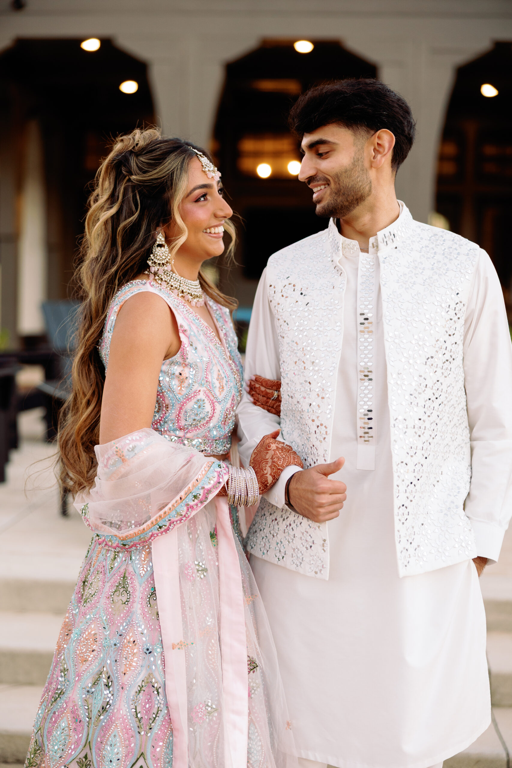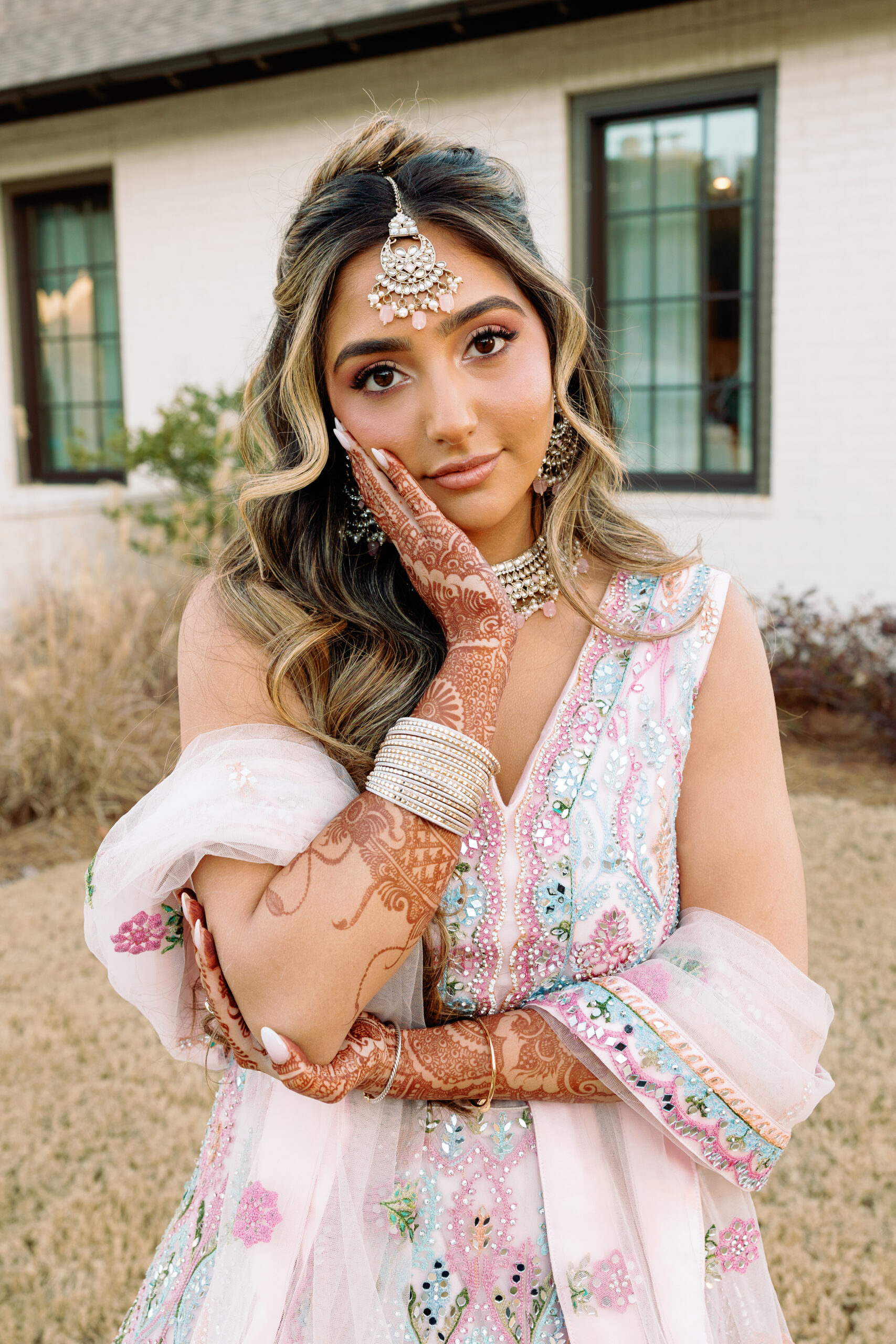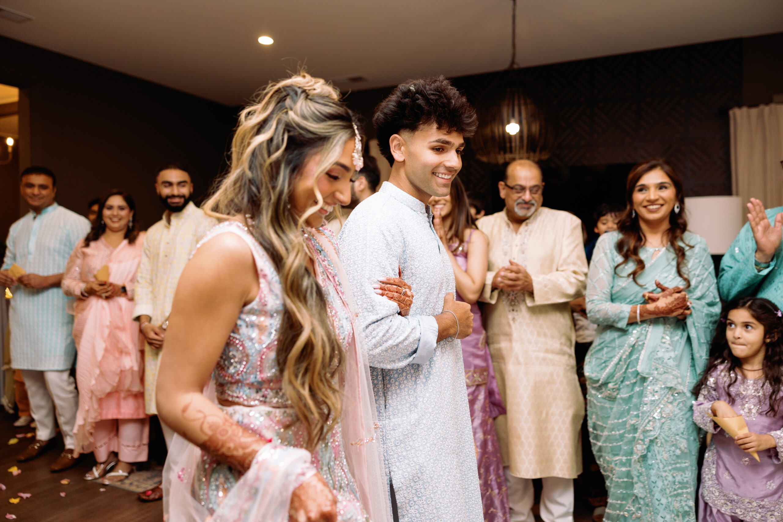Catering: Bawarchi Indian Cuisine. Event Planning & Desserts: Events by Soha. Hair Stylist: Styled X Paige. Henna Artist: Asmita Minsariya. Makeup Artist: Haleigh Amend Beauty. Photography: Livey Ivey Photography. Videography: Amit Bharwani Photography.