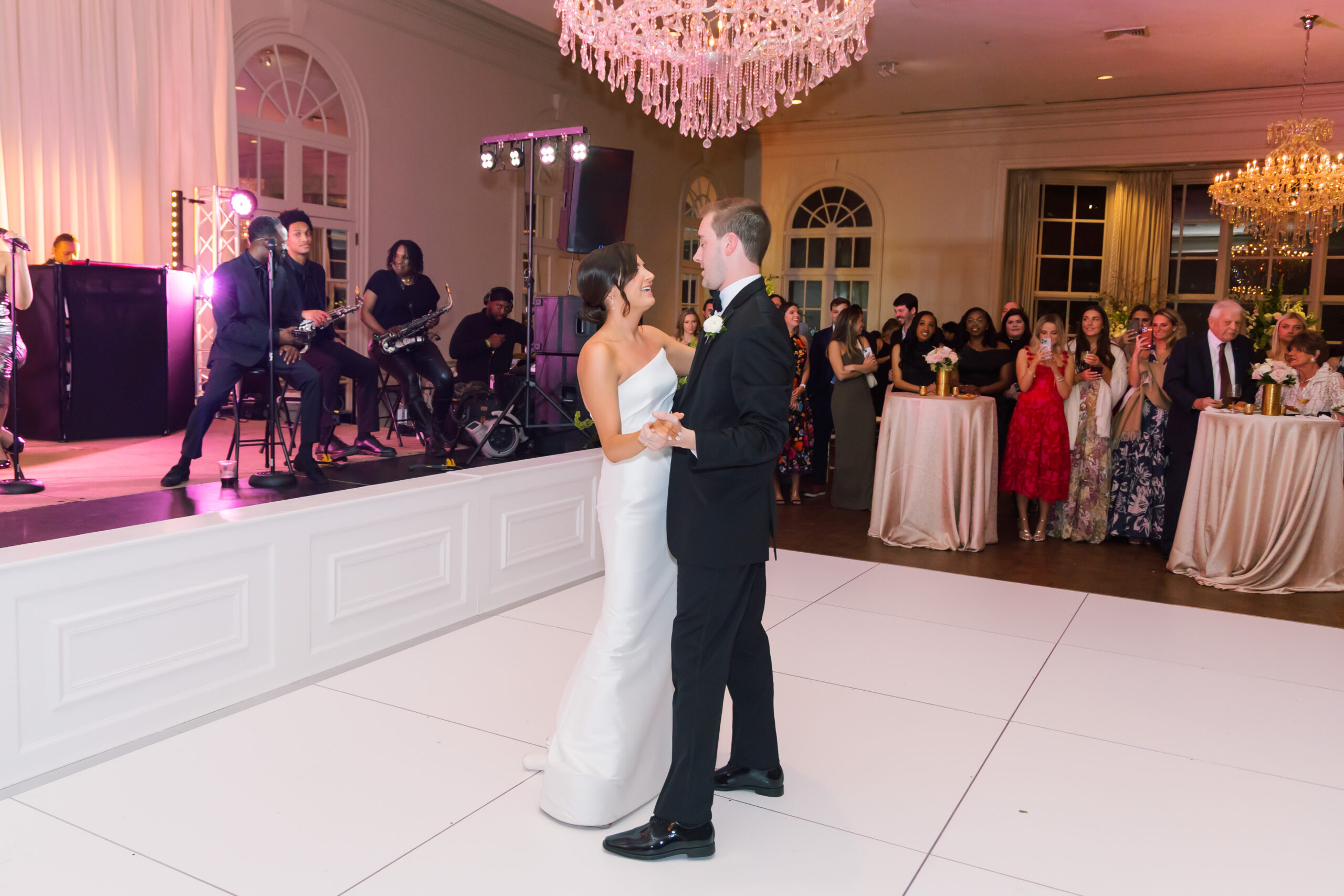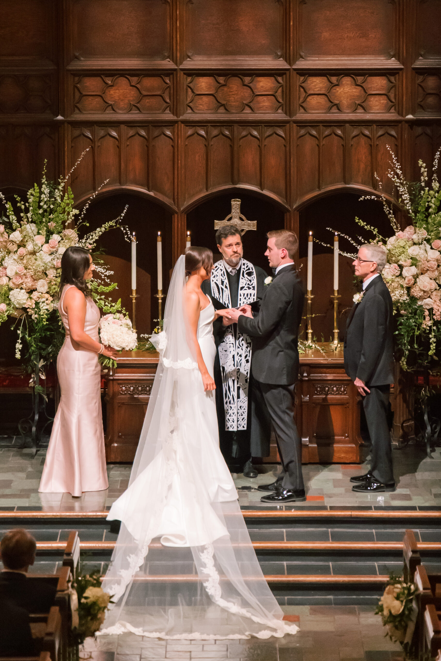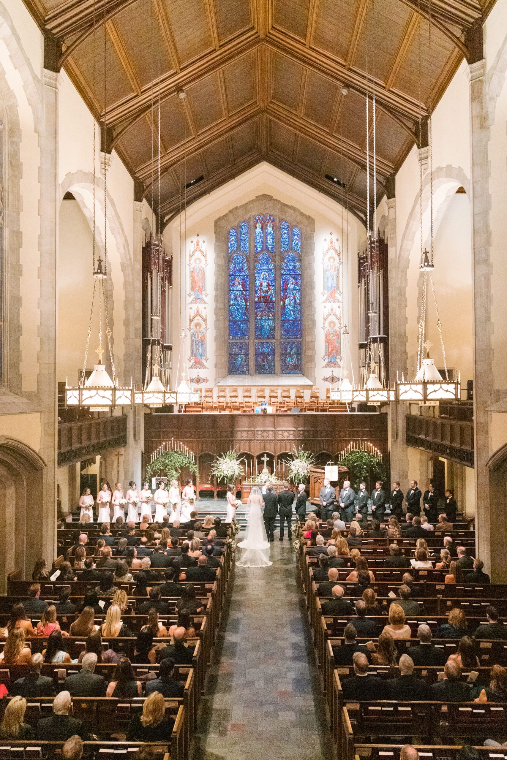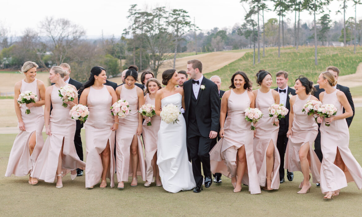 Bridal Gown: Carriage House Weddings. Bridesmaid Gowns: Bella Bridesmaids. Cake: Magic Muffins. Ceremony Venue: Independent Presbyterian Church of Birmingham. Catering, Reception Venue: Vestavia Country Club. Floral & Event Design, Stationery: Dorothy McDaniel’s Flower Market. Groom’s & Groomsmen’s Attire: Jos. A. Bank. Hair Stylist: Beauty by Halee Brooke. Makeup Artist: Be-Loved Beauty. Music/Entertainment: One Nation Party Band with Music Garden. Photography: Colorbox Photography. Rings: Diamonds Direct. Transportation: Dream Drives BHM. Wedding Planner: Southern Season Events.