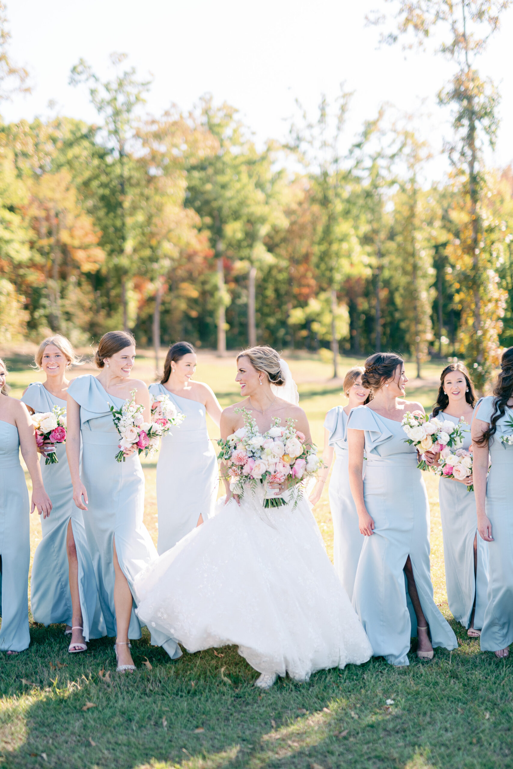 Bridal Gown: Ivory & White Boutique. Bridesmaid Gowns: Bella Bridesmaids. Cake: Daughter’s Baking. Catering: Tre Luna Catering. Ceremony & Reception Venue: Oak Meadow Event Center. Event Rentals: Decor to Adore, Prophouse. Floral Design: CS Floral Design. Hair & Makeup: Natalie Moore. Music/Entertainment: DJ SZN for Superior Sound Entertainment. Photography, Videography: Eric & Jamie Photography. Stationery: Empress Stationery. Wedding Planner: Lauryn E. Weddings.