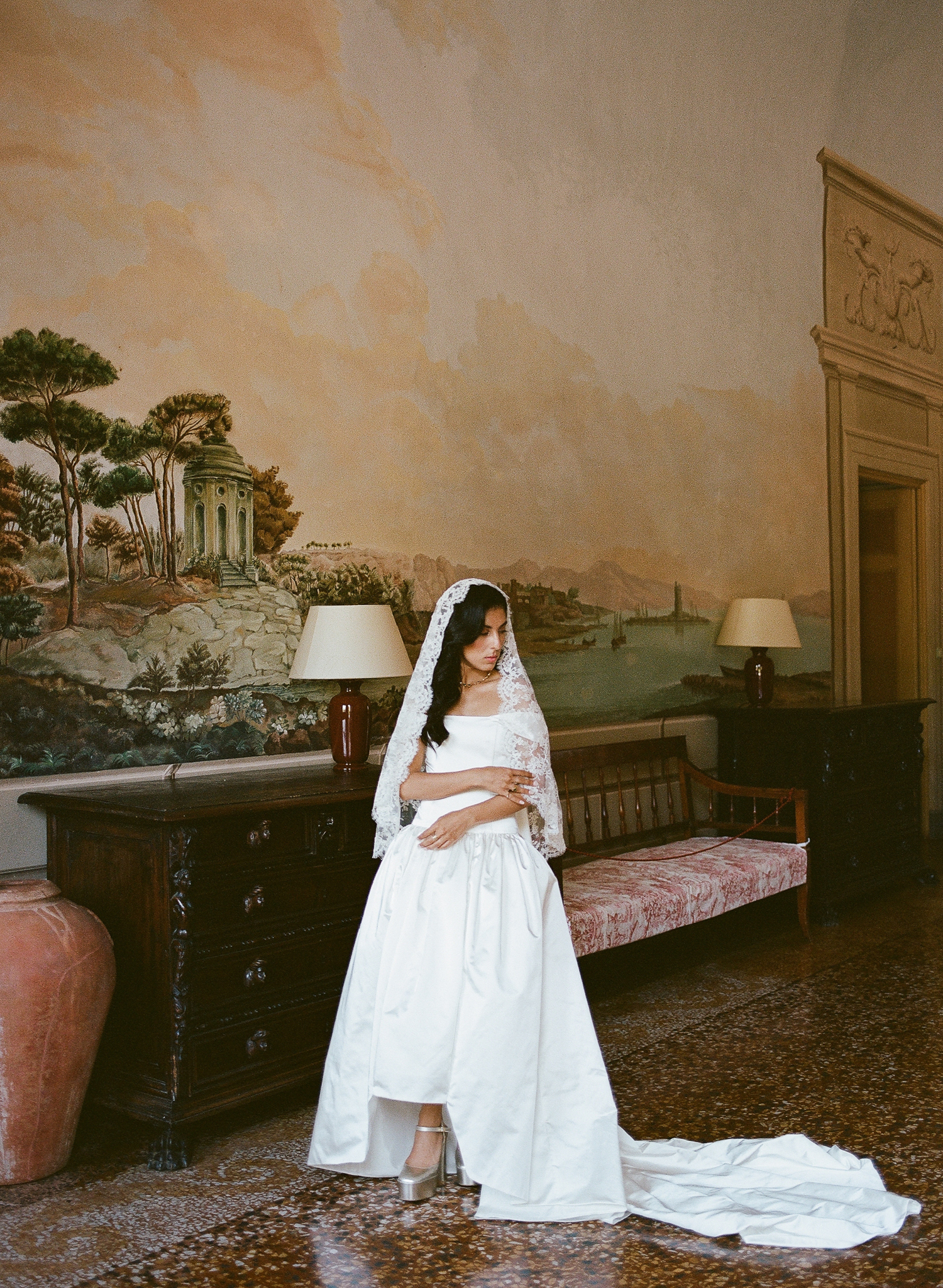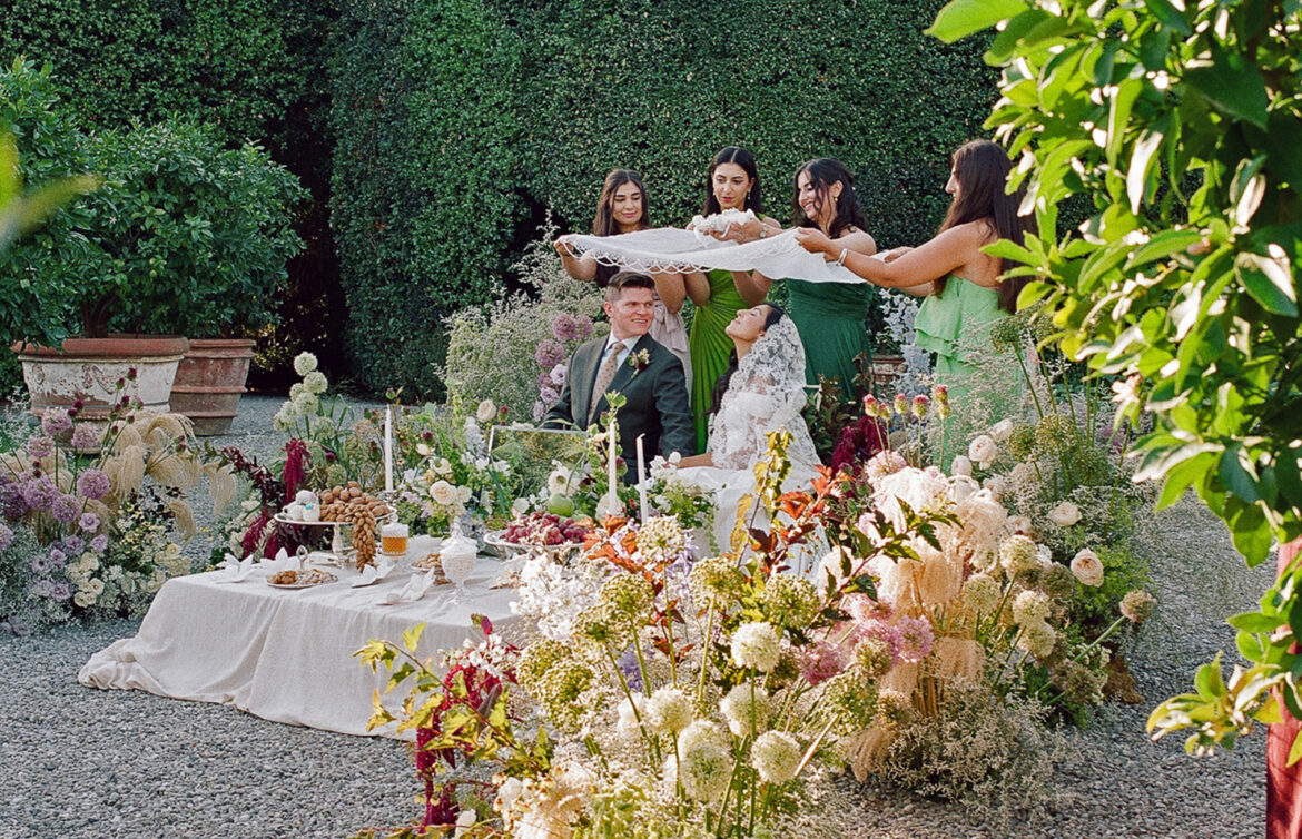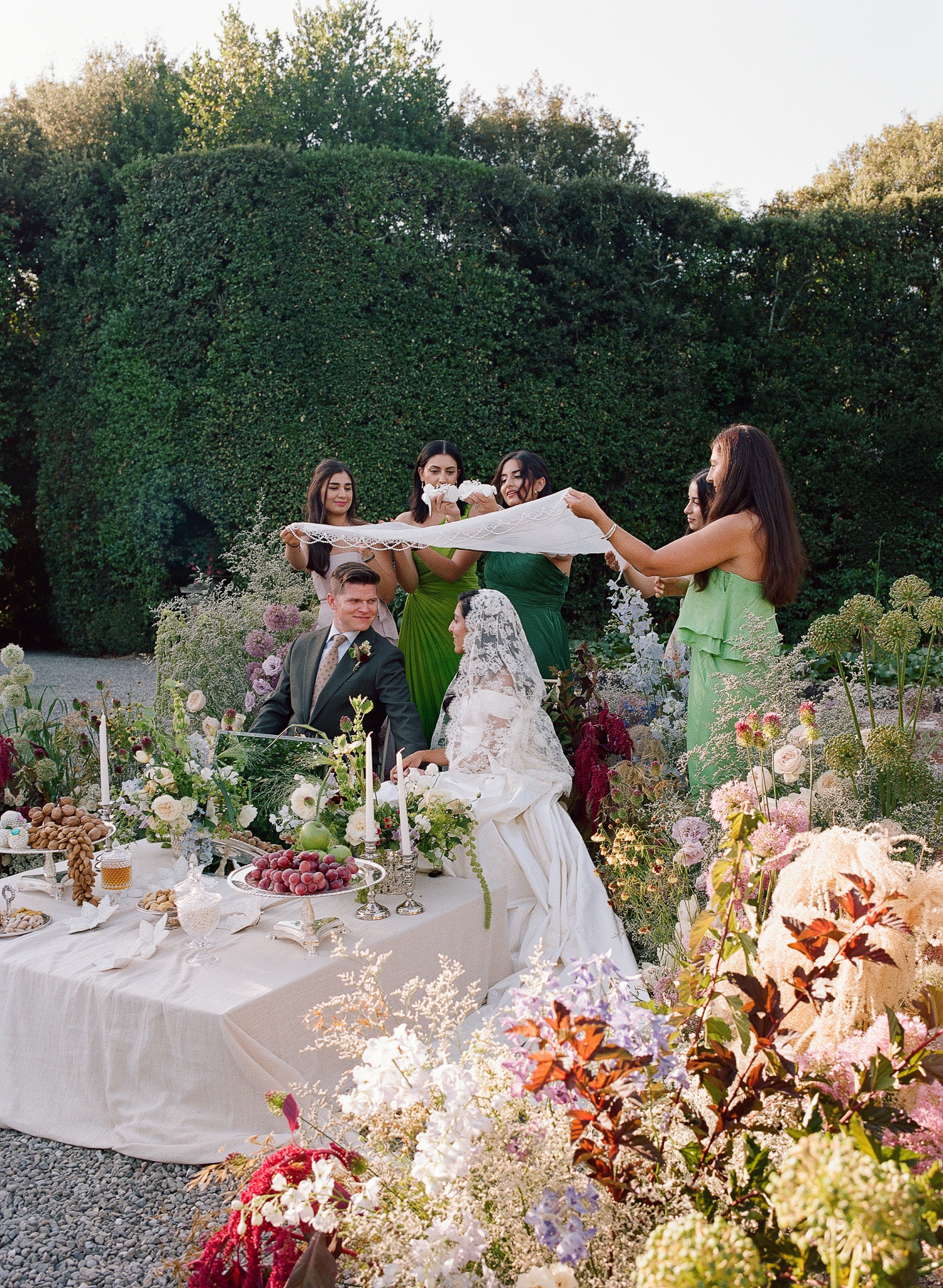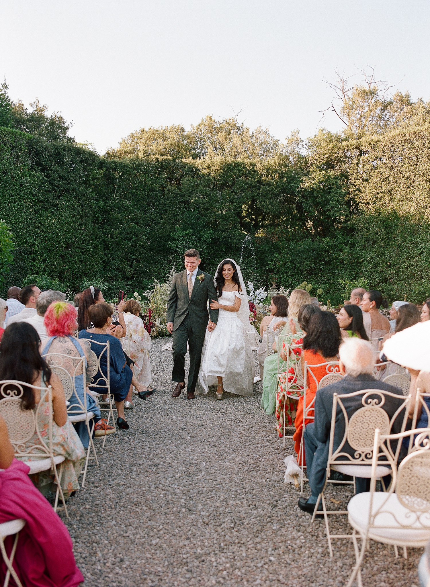 Bridal Gown: Custom by Renhue. Catering, Rentals: Roland’s Catering. Ceremony & Reception Venue: Villa Grabau. Floral Design: Chiari Sperti Floral Events. Groom’s Attire: Bespoke Suit by TBCo. Reserve. Hair Stylist: Dyana Nematalla. Music: DXD. Photography: Mo Davis Photography. Stationery: Nicolette Kubea. Videography: Cinema of Poetry. Wedding Design, Planning, and Production: CONFERO.