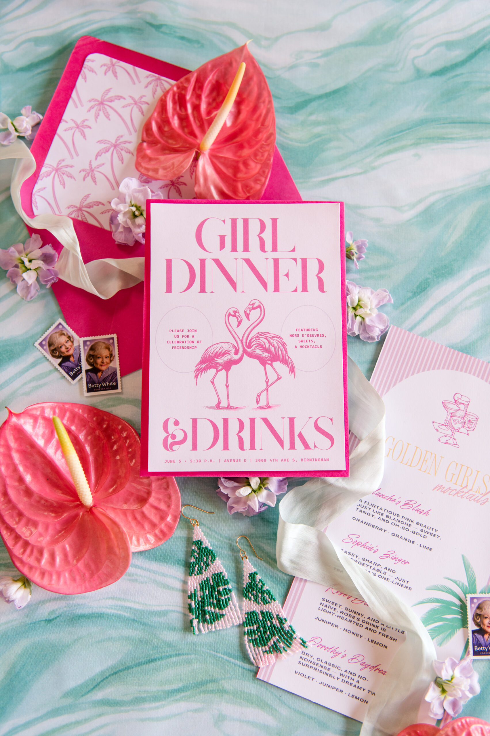 “This styled shoot was born from an idea shared by members of our Rising Tide Society Birmingham chapter, and it was such a joy to bring it to life through planning, organizing, and photographing the day. From florals to mocktails to food styling, every detail reflected the unique talents of our creative community. It was so fun seeing everyone in their element, collaborating and creating side by side. The entire experience was a true picture of community over competition, and with our Golden Girls Garden Party theme, the words,‘Thank you for being a friend,’ couldn’t have been more fitting.” – Debby Cullum, Deborah Michelle Photography