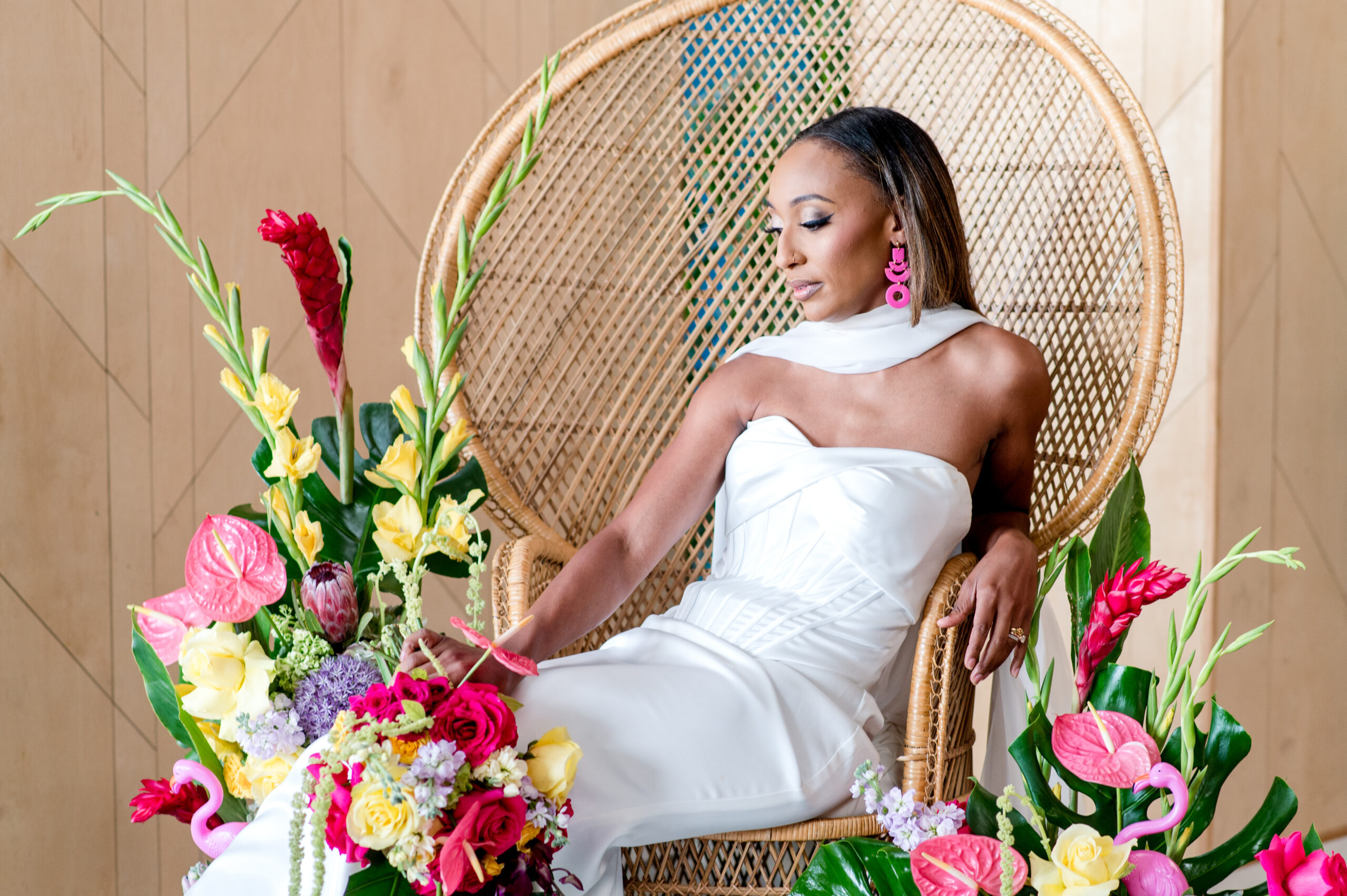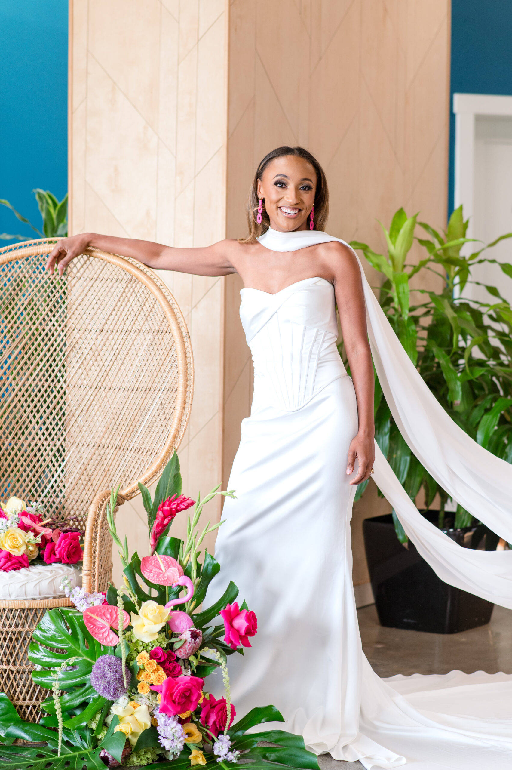 Bridal Gown: Imperial Formal Wear. Bridesmaid Gowns: Clover + Bee. Confections: Adored Sweets, Beck’s Blissful Bites. Catering: Sorelle. Content Creator: Bree Does Social. Earrings: Six16 Creative. Floral Design: Katherine Reed Events. Furniture/Accessory Rental: Westhouse Events, Tea & Old Roses, The Little Wedding Print Shop, Elevated Entertainment. Hair Stylist: Audrie Klavas Beauty. Letter Lights: Say It In Lights. Linens: Decor to Adore. Makeup Artist: Coco Moore Makeup. Photography, Styled Shoot Planner: Deborah Michelle Photography. Stationery: Justice Creative Co. Spirit-Free Cocktails: Trunk Tea. Venue: Avenue D.