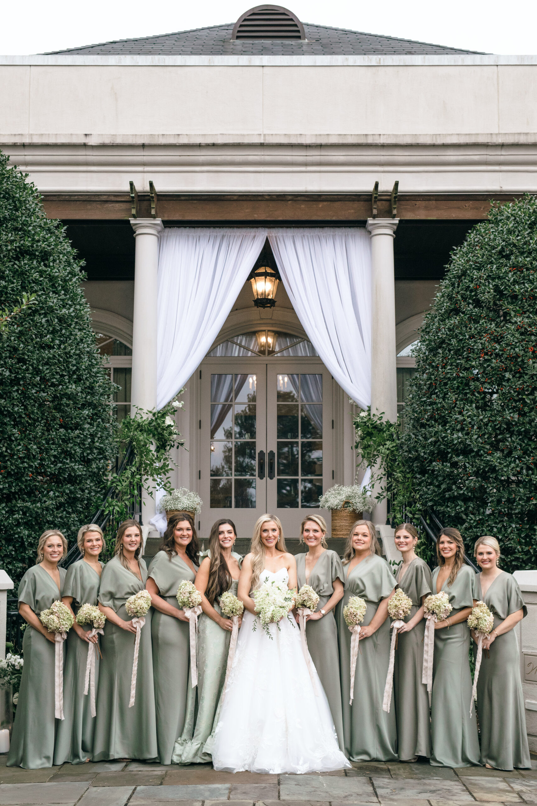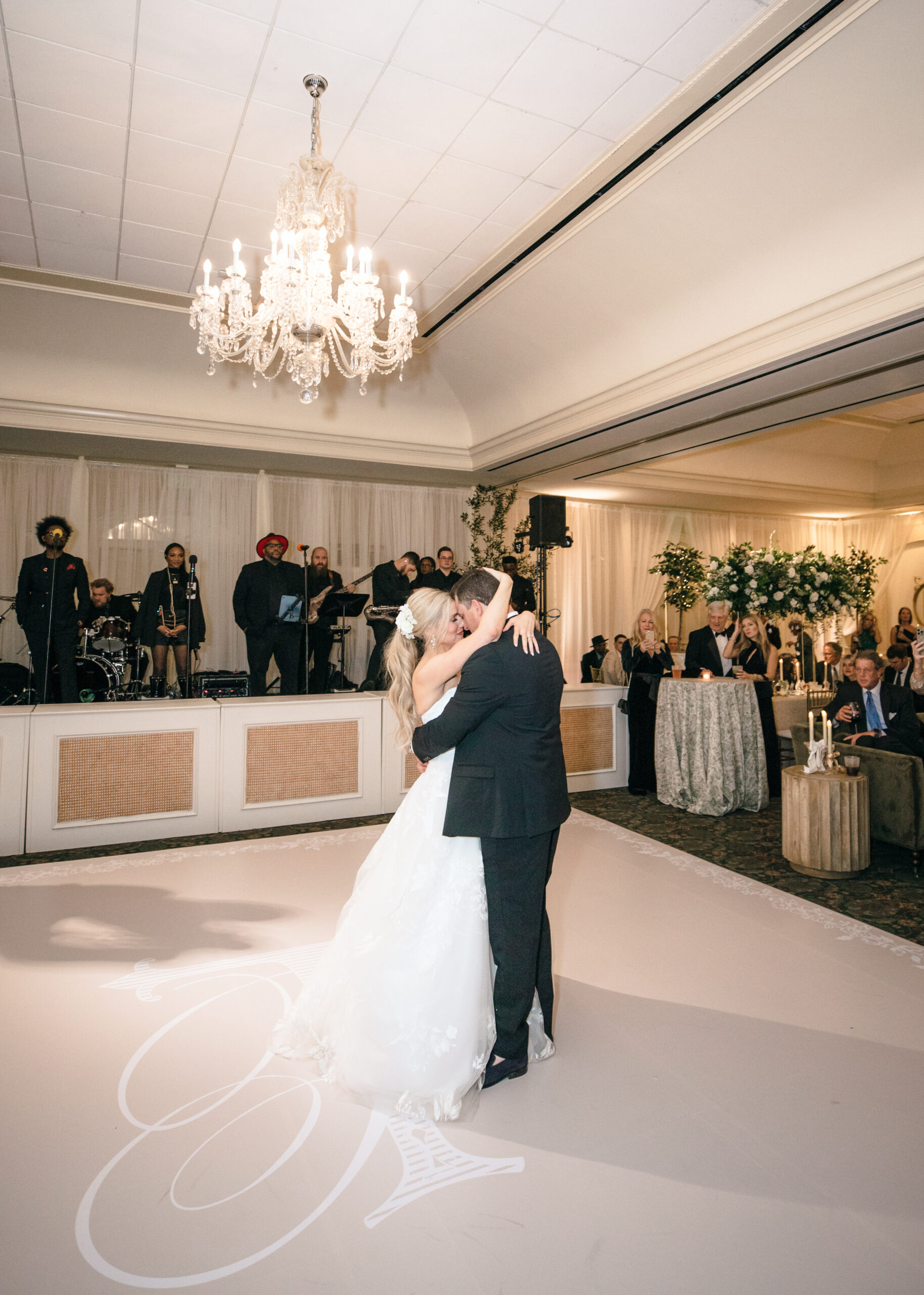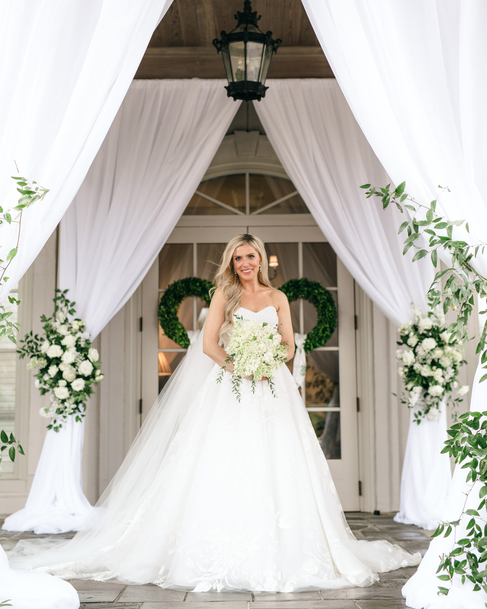 Bridal Gown: Carriage House Weddings. Bridesmaid Gowns: Anthropologie Weddings. Cake: Olexa’s Cakes. Catering; Ceremony, Reception & Rehearsal Dinner Venue: Wynlakes Golf and Country Club. Custom Dance Floor Wrap: Southern Event Wraps. Event Rentals: Brendle Rentals. Floral: Dana’s Floral Design, RB Floral Art. Furniture/Accessory Rental: Elegant Events. Groom’s & Groomsmen’s Attire: Bridal Boutique & Tux Shoppe. Hair & Makeup: Brittany B. Massey. Lighting & Draping Design: Special Event Lighting. Linen: BBJ La Tavola. Music/Entertainment: Alex Ahn Violin. Photography: Geoff & Lyndsi Photography. Stationery: Kara Anne Paper. Transportation: Coats Classic Cars. Wedding Planner: Jackie Frontiero. Videography: Holloway Productions.